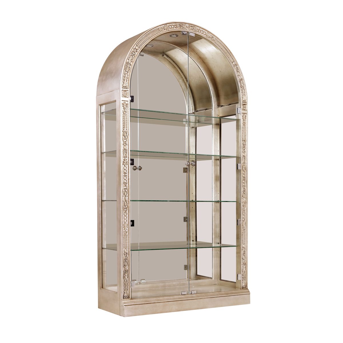 * 手工雕刻的工藝細節結實的連接技術18道以上的多步驟油漆工藝; * 門內有四塊玻璃層板,背板處裝有背鏡,使內部的光線更通亮;