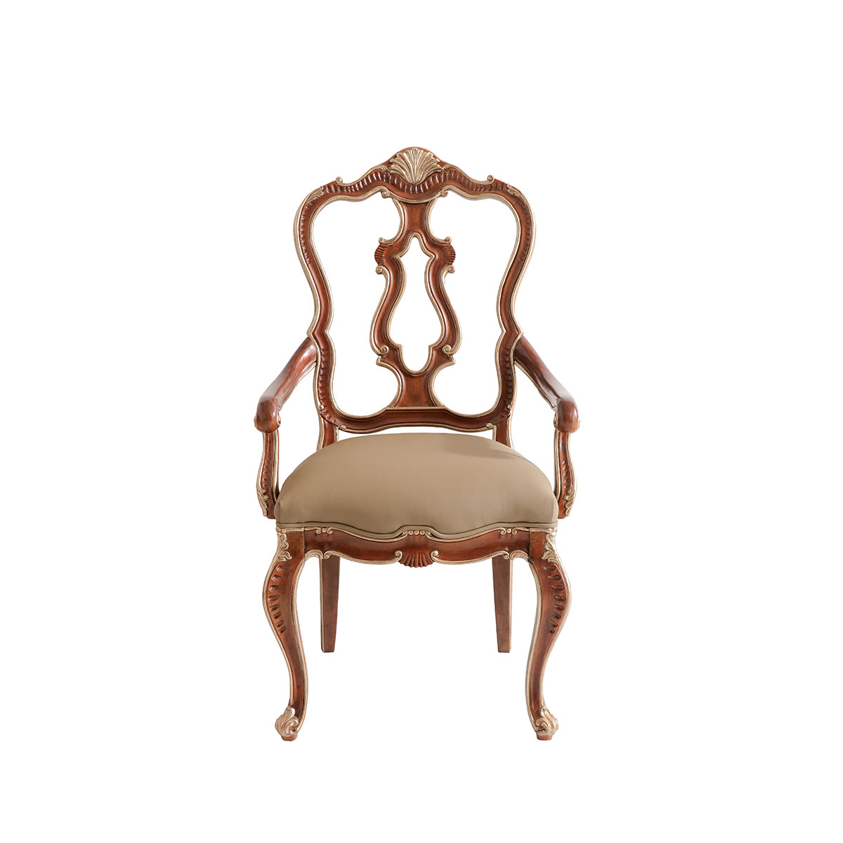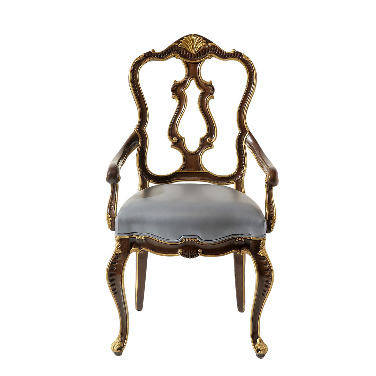 * 精細的椅腦與腳貝形雕刻; * 可拆裝的軟包座墊; * 提供多種面料可供選擇;