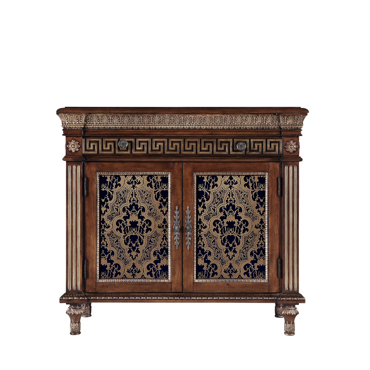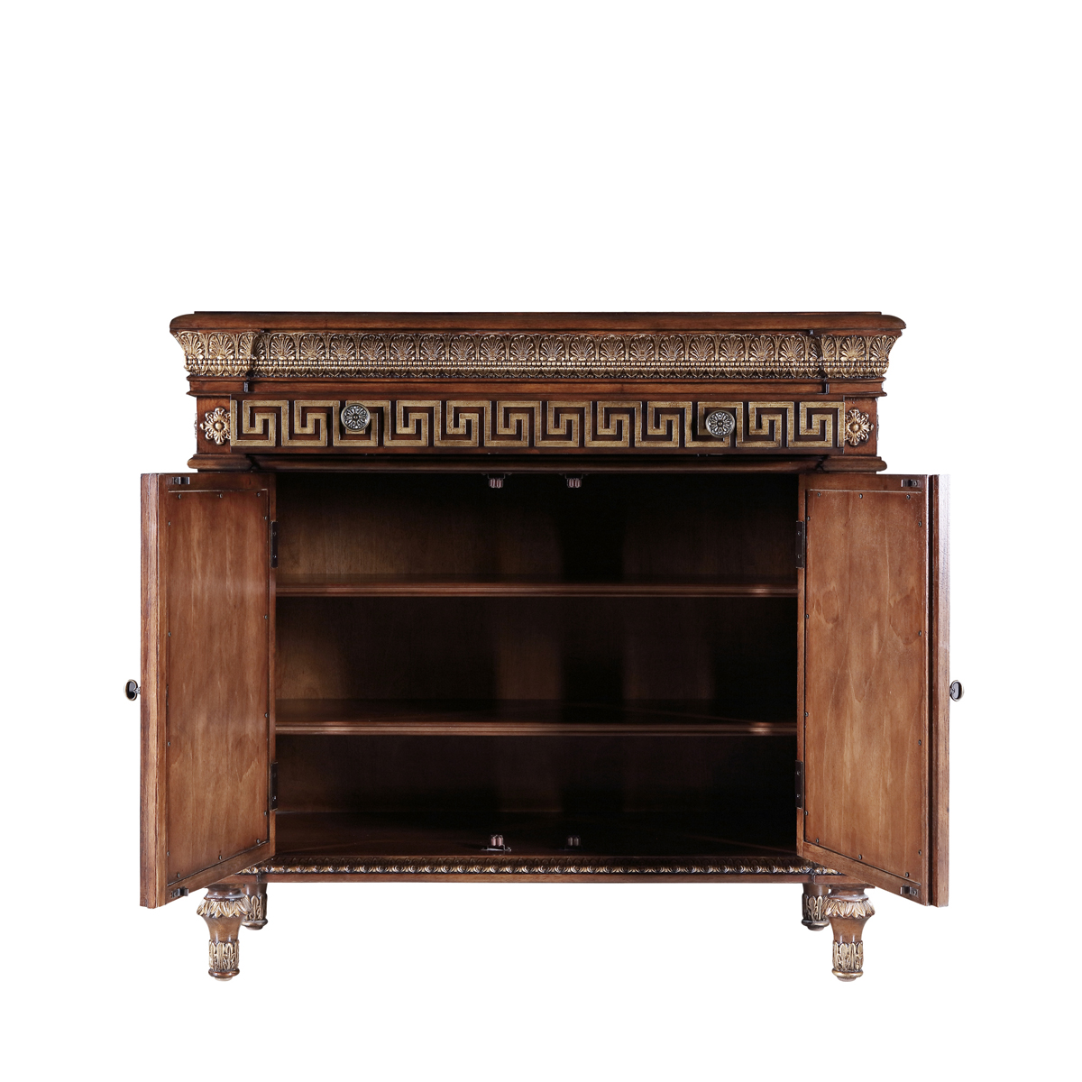 * 從17世紀意大利帝國EMPIRE風格中汲取靈感,以意大利的宮廷家具和羅馬的古建筑為元素,使用絢麗的銀箔彩繪與描金工藝結合;配以仿古金的油漆和夜空藍的寶石面,精彩展現了意式家具奢華絢麗而又極富藝術人文氣息的迷人魅力。