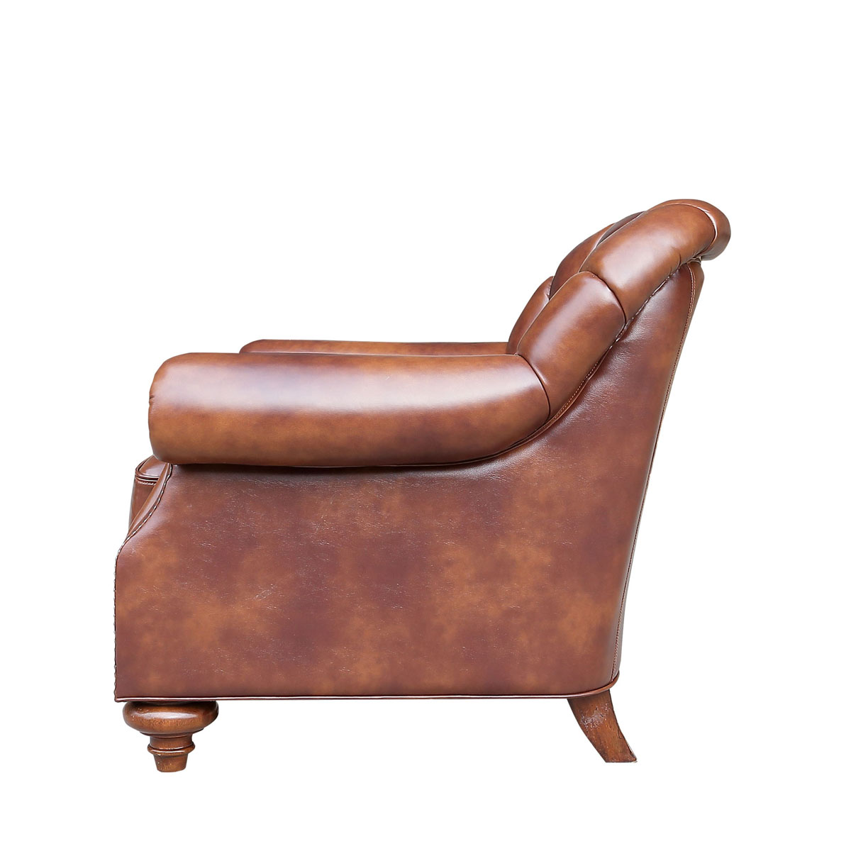 * 經(jīng)典Chesterfield(切斯特菲爾德)風(fēng)格休閑椅,配上舒適的皮革和包有豐厚的填充物坐墊和靠背,讓這款沙發(fā)傳統(tǒng)和舒適并存;
