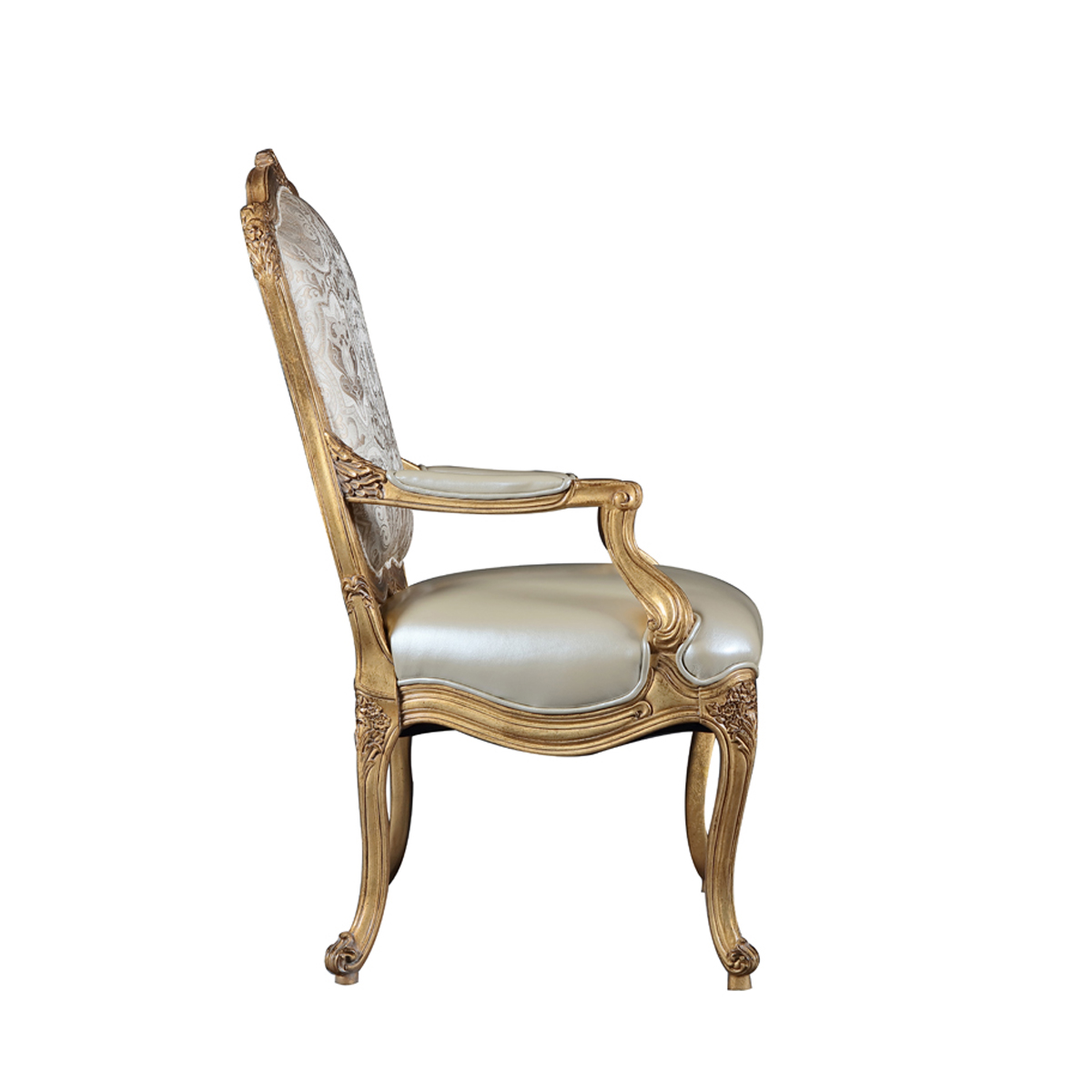 參考18世紀(jì)法國(guó)路易十五時(shí)期經(jīng)典的法式 Bergère 椅設(shè)計(jì) ﹣多以婀娜的 Camelback Silhouette(駝峰輪廓)和外露的木框架表達(dá);并配上細(xì)致的卷葉雕刻工藝、觸感舒適的布藝、法式經(jīng)典彎腳和金箔描金工藝,釋放法式浪漫情懷。