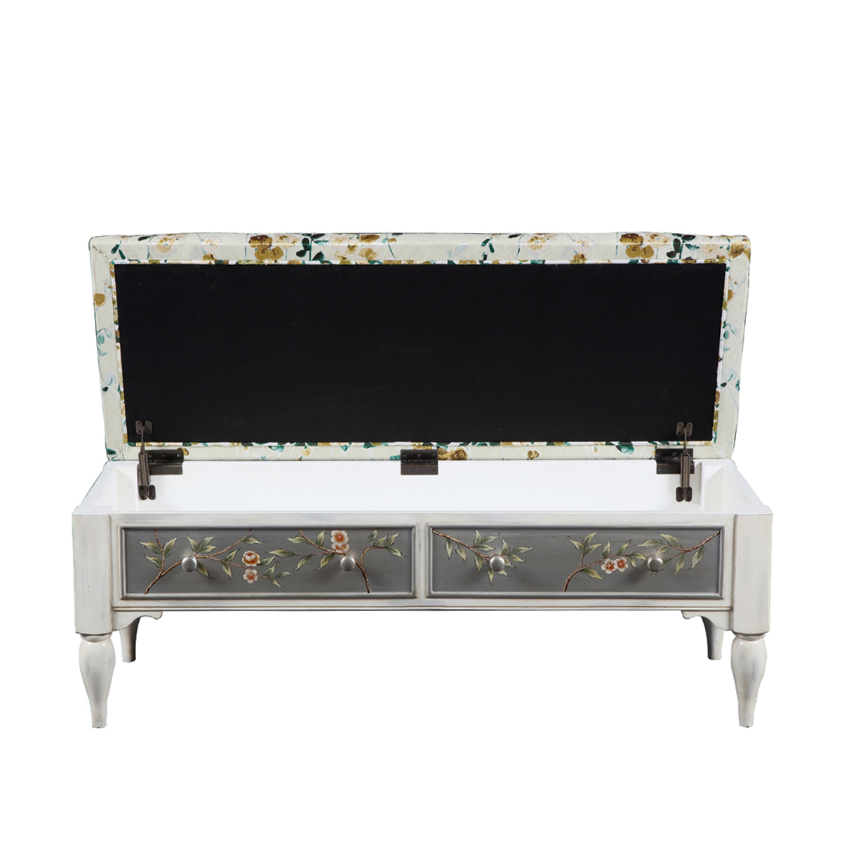 花葉,藤蔓伸展蔓延,靈鳥輕憩其上,典雅的銀底手繪栩栩如生,將清新淡雅的田園風(fēng)味融進(jìn)家居裝飾中,為家增添濃郁又鮮活的自然表情,兩個(gè)抽屜設(shè)計(jì),存取便利,美觀又有實(shí)用功能。