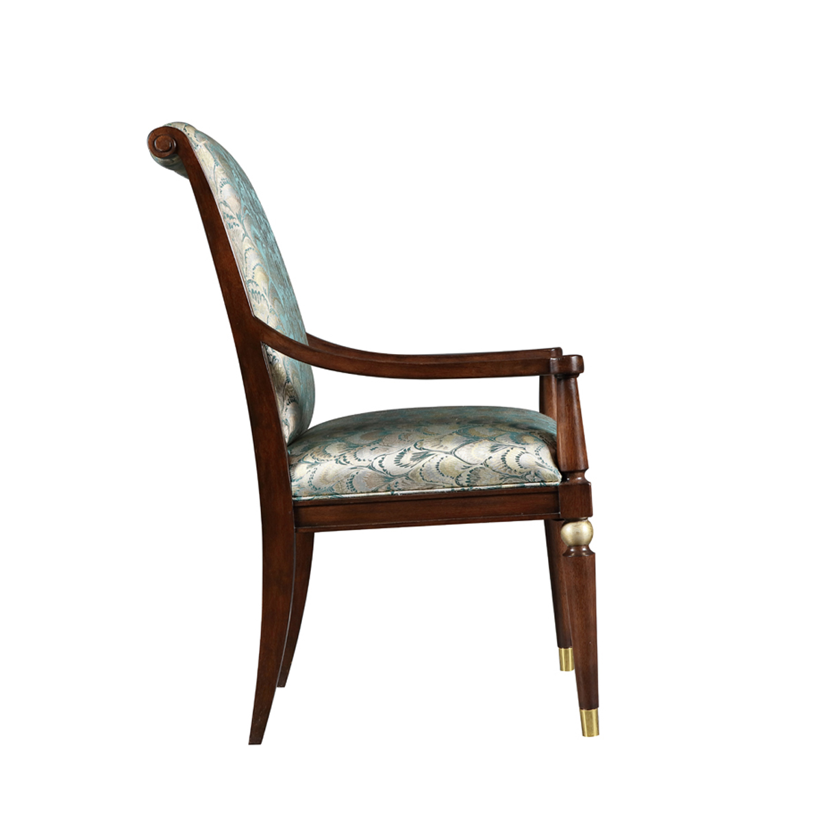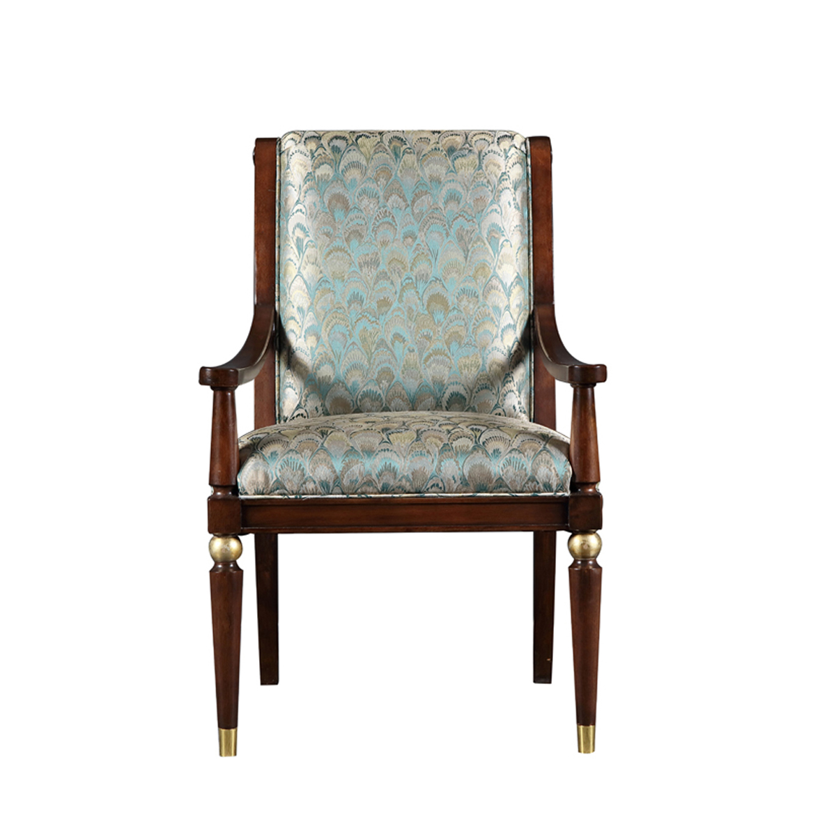 胡桃木色框架深淺明暗度的對比,更具有立體感,清晰的胡桃木紋理和孔雀翎印花布藝體現出大自然的感覺。