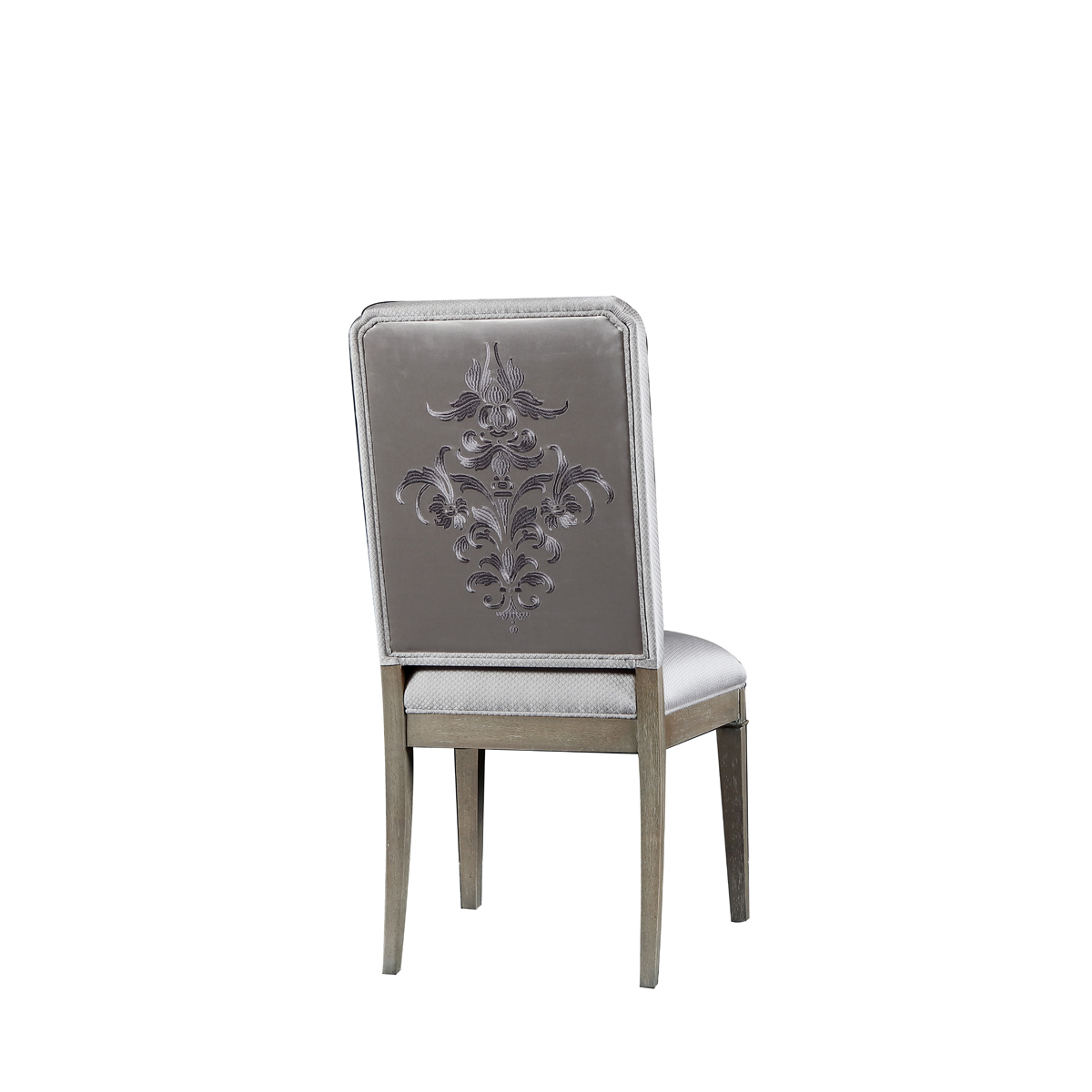 新古典主義彎刀腿簡練而有藝術特質,源自于“文藝復興”時期的大馬士革花化身餐椅獨特圖騰,花紋形態多變,樣式雍容華貴,方形靠背彰顯時尚的大氣灑脫。