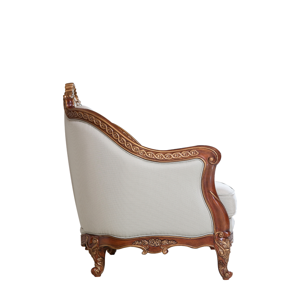 以路易時期新古典風格為設計靈感,以作為歌頌太陽王象征的太陽花連環雕刻為設計元素;配以實木花環和卷葉雕刻,青草淺綠與棕色大地色相得益彰,以及洛可可經典彎腿,將新古典的美表現得淋漓盡致,傾情演繹了法式宮廷家具的精致尊貴。