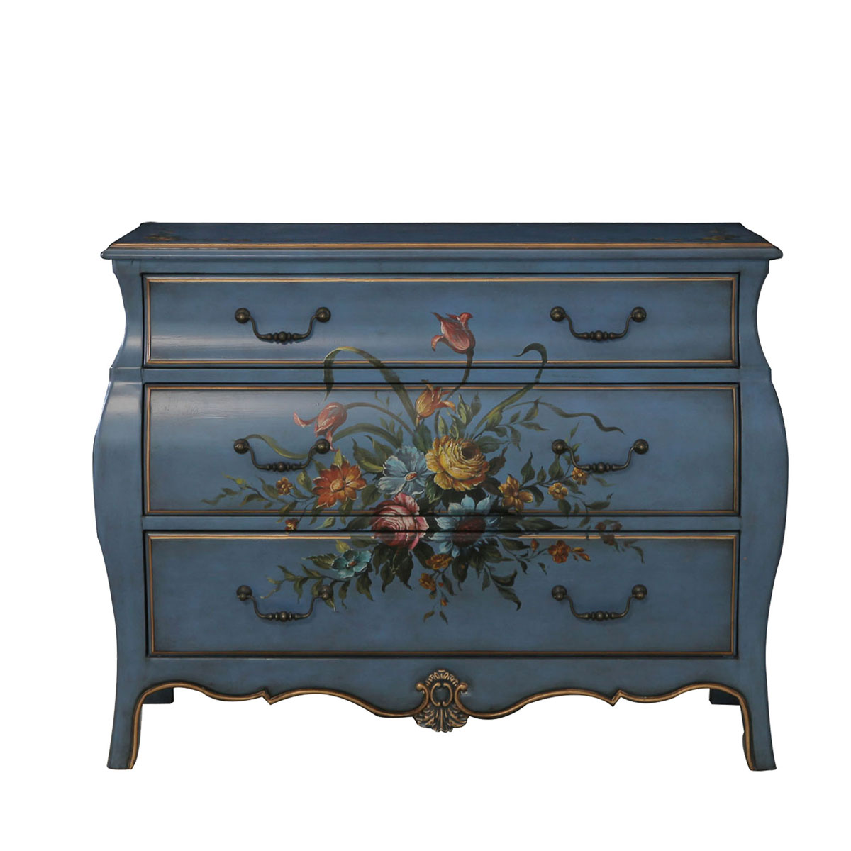 * 花紋圖案都是經(jīng)過專業(yè)工藝師精心繪制而成, 所以每件產(chǎn)品都是獨(dú)一無二的; * 三個(gè)儲(chǔ)物抽斗,底部采用硬木實(shí)木路軌; * 腳底部裝有可調(diào)整腳釘.