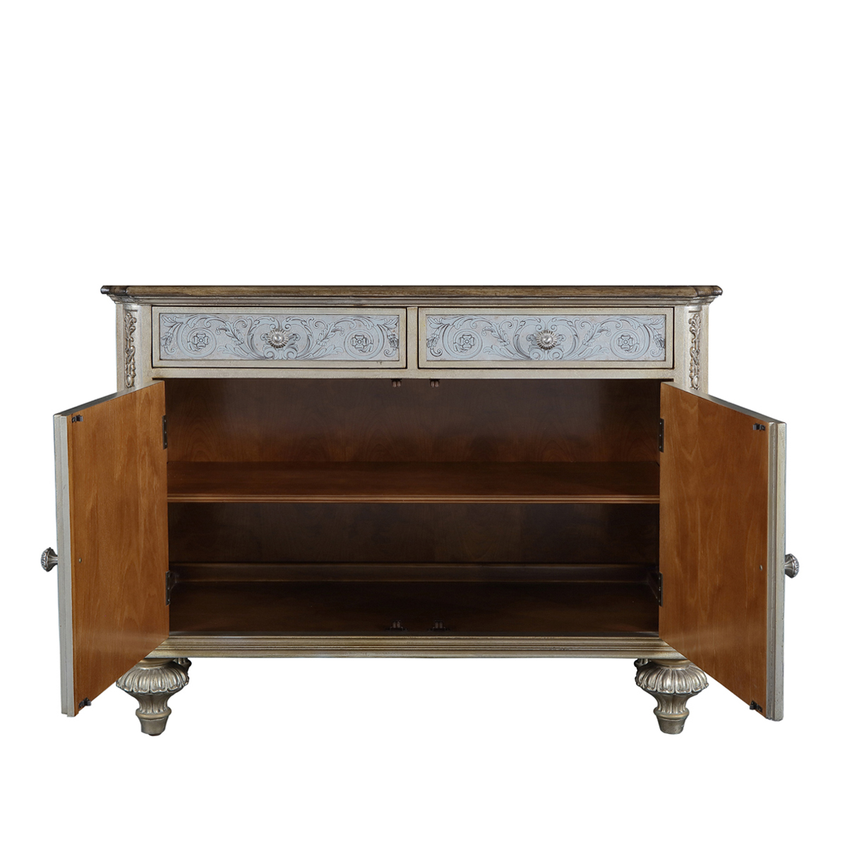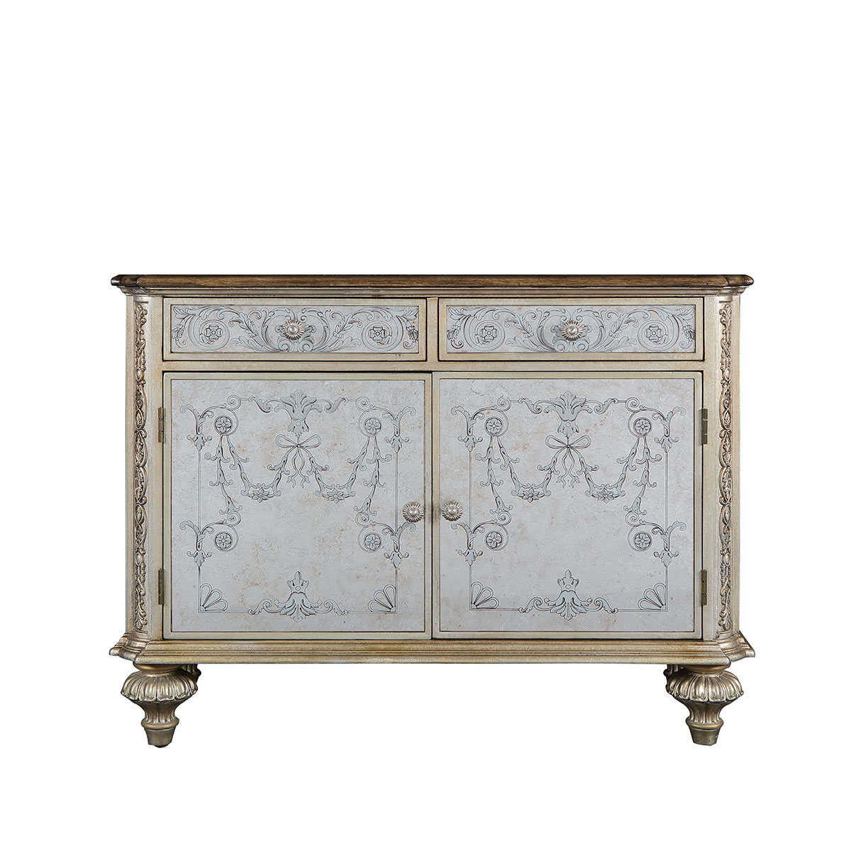 * 手工雕刻的工藝細(xì)節(jié)結(jié)實的連接技術(shù)18道以上的多步驟油漆工藝; * 2個儲物抽斗,采用經(jīng)典的硬木實木滑軌設(shè)計; * 門內(nèi)有1塊實木層板; * 底部裝有可調(diào)腳釘;