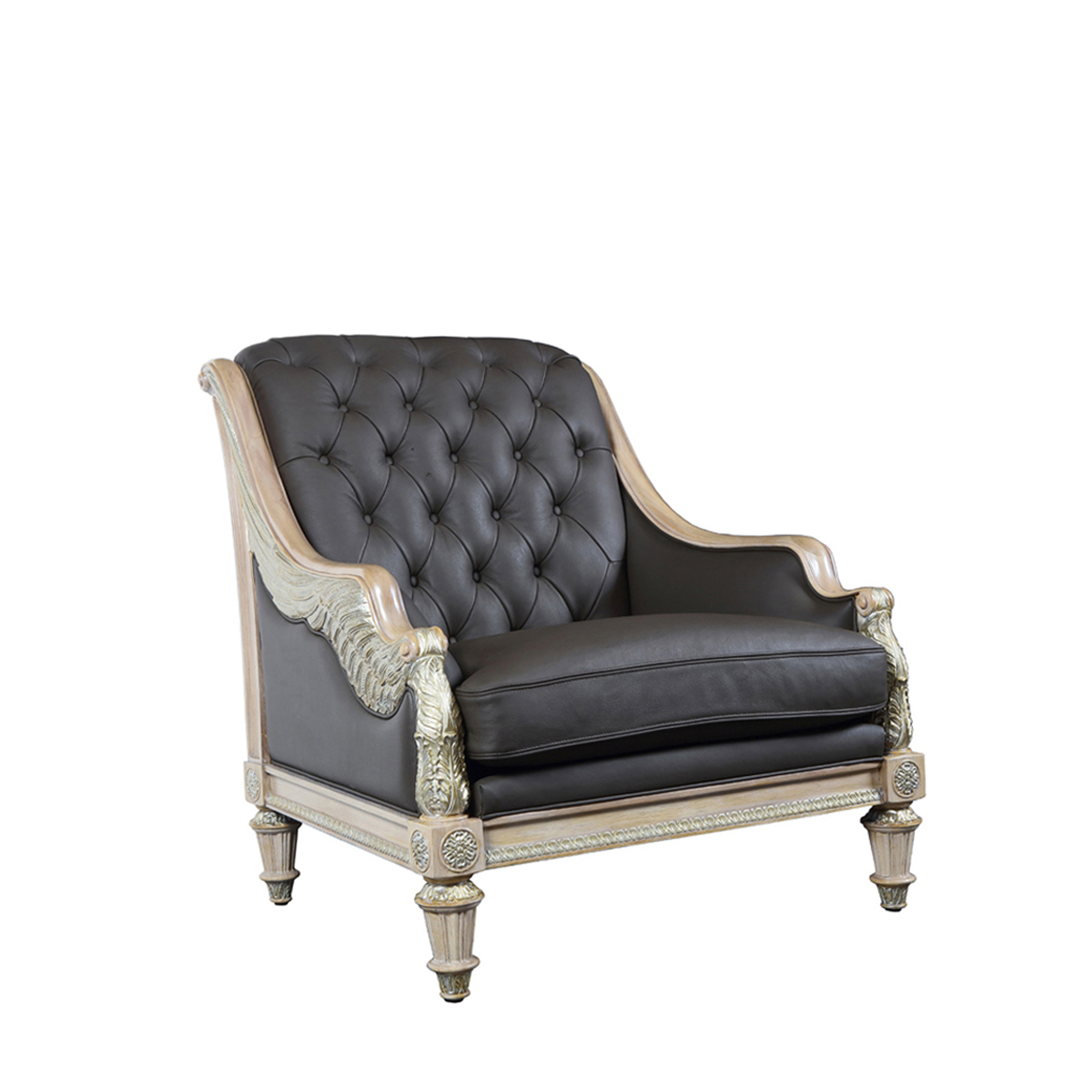 魅影灰邂逅灰褐色,皮質珍奢而不失大氣之姿;設計雕刻出勝利女神-Samothrace翅膀扶手,羽翼豐滿的羽毛雕刻極為精巧經典,援引古典常用的色彩,以簡飾繁;錯落有序的條紋回路蘊藏著達•芬奇的繪畫創作靈感,拉斐爾的建筑設計妙思以及米開朗基羅的雕塑精粹。