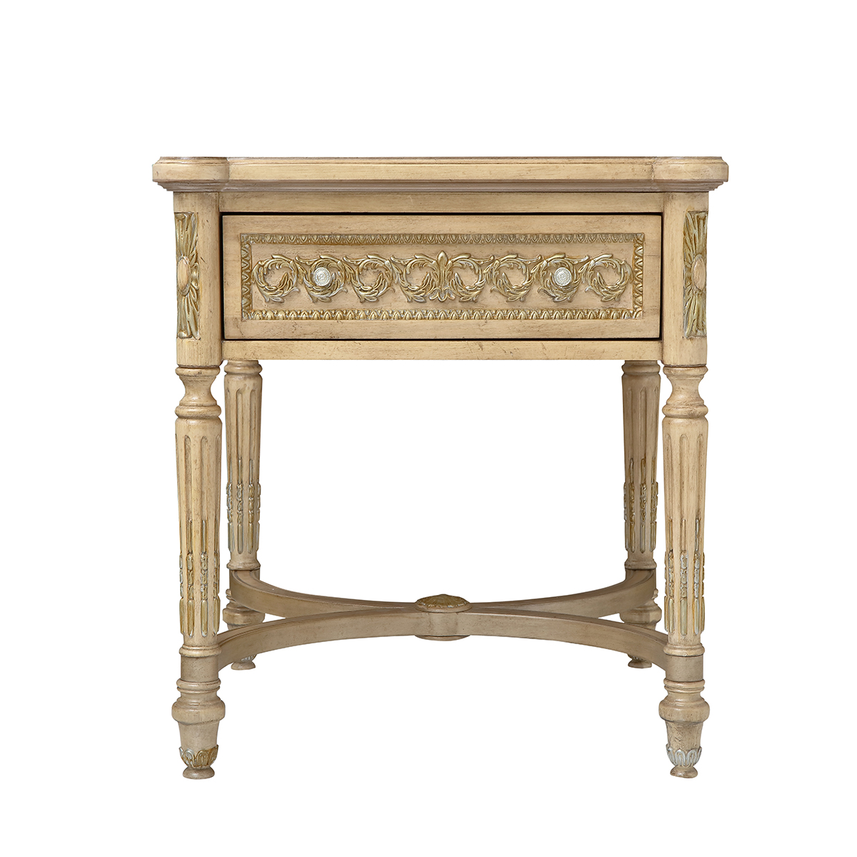 • 手工雕刻的工藝細節 • 結實的連接技術 • 1個儲物抽斗,其底部采用經典硬木實木滑軌設計;門內有一塊可調整層板