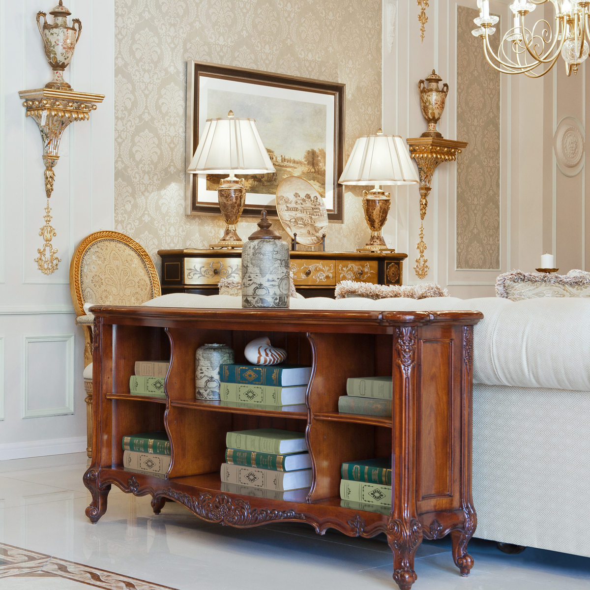 * 手工雕刻的藤蔓、阿坎瑟斯卷葉圖案和彎腳設計 * 結實的連接技術 * 這款沙發桌設有三塊可調整層板 * 底部裝有可調整腳釘;