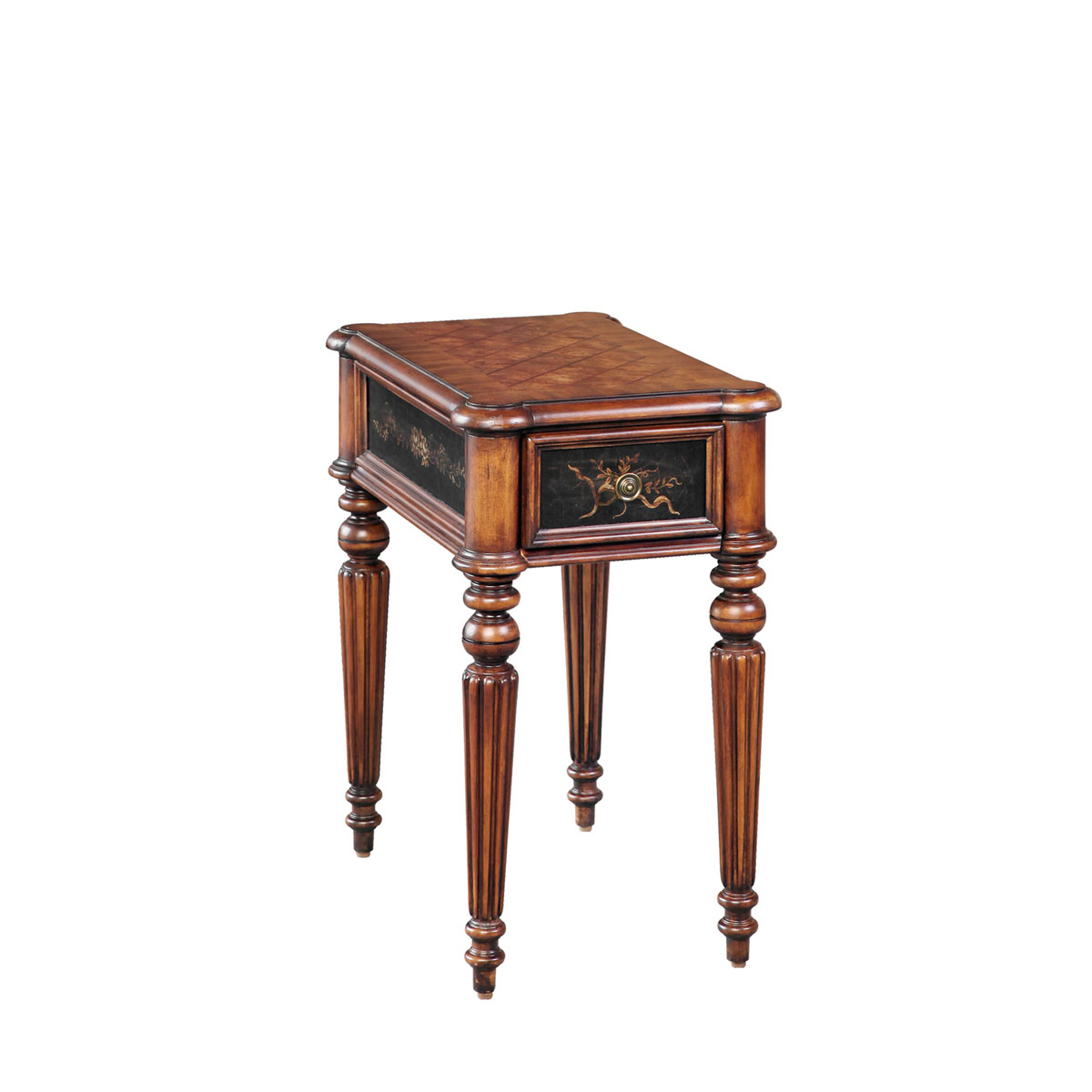 * 以18世紀英吉利——“日不落帝國”為設(shè)計主題,將東西方的多種藝術(shù)元素結(jié)合在一起。精致的木皮貼面,展現(xiàn)了高檔木材的天然紋理,帶出獨特的立體感;黑底金漆的山水手繪,頗具東方情調(diào)。配上Sheraton(謝拉頓風(fēng)格)的錐形凹槽柱和層板設(shè)計,是經(jīng)典系列英吉利經(jīng)典英式長方咖啡桌的特色。