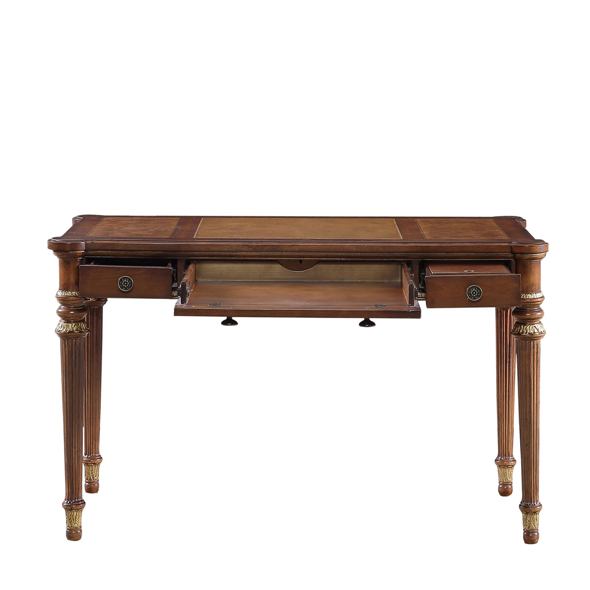 * 手工雕刻的工藝細節結實的連接技術18道以上的多步驟油漆工藝 * 共三個大小不同的抽斗; * 中間為鍵盤斗,兩邊為鼠標斗; * 腳是可拆裝的; * 腳底部裝有可調整的腳釘;