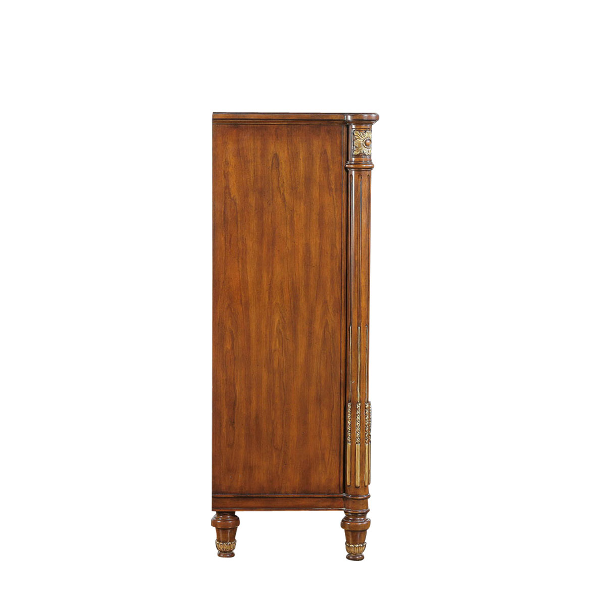 * 為表現(xiàn)法國路易時期的莊嚴和浪漫,以法國凡爾賽宮為設(shè)計元素。使用歌頌路易十四時期的太陽花雕刻,顯示其王權(quán)穩(wěn)固地位的錐形腿腳設(shè)計,配以鉆石圖案的木皮貼面、古銅色的球形把手和貼金工藝,完美演繹了法式宮廷家具的奢華尊貴。