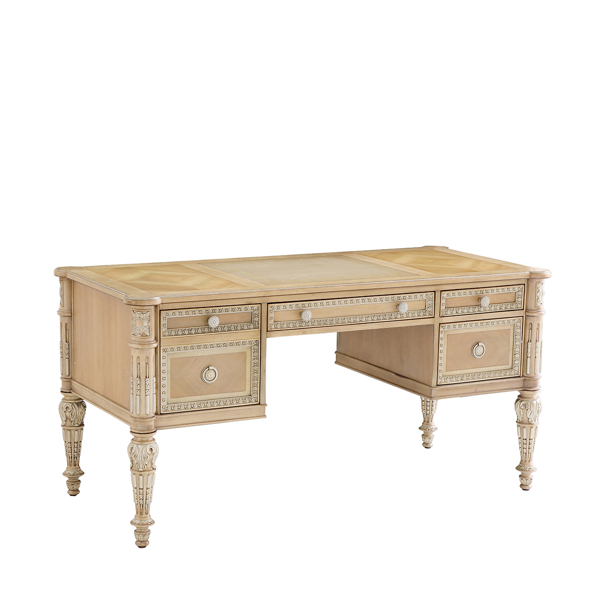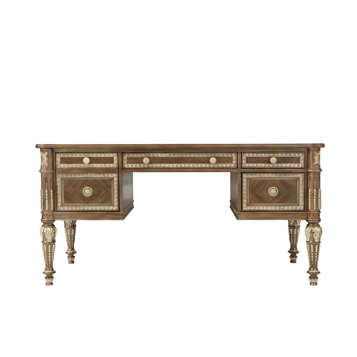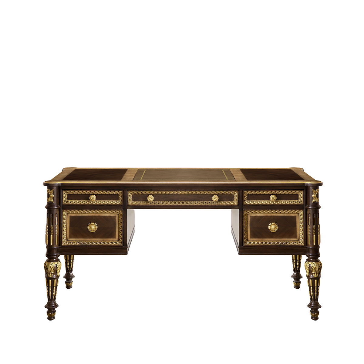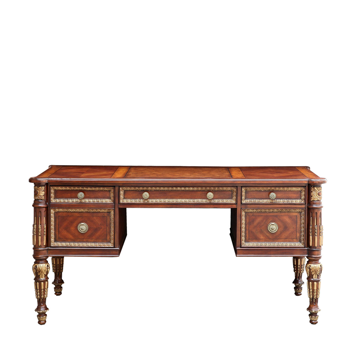 * 為表現法國路易時期的莊嚴和浪漫,以法國凡爾賽宮為設計元素。使用歌頌路易十四時期的太陽花雕刻;顯示其王權穩固地位的錐形腿腳設計,配以鉆石圖案木皮貼面、古銅色球形把手和貼金工藝,完美演繹了法式宮廷家具的奢華尊貴。