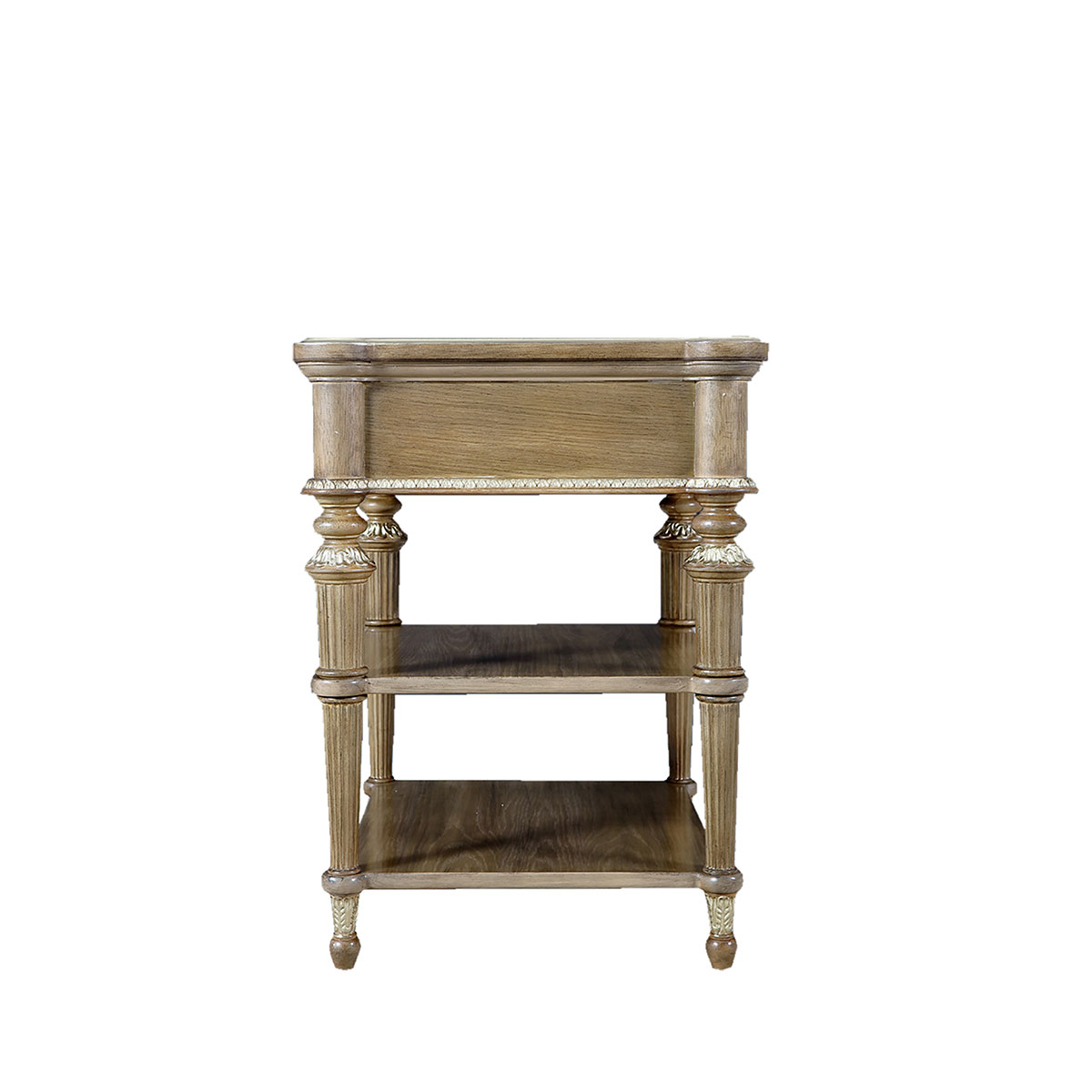 * 一個儲物抽斗,其底部采用經典硬木實木滑軌; * 上面為開空設計,可放便存取物品; * 腳部裝有可調整腳釘;