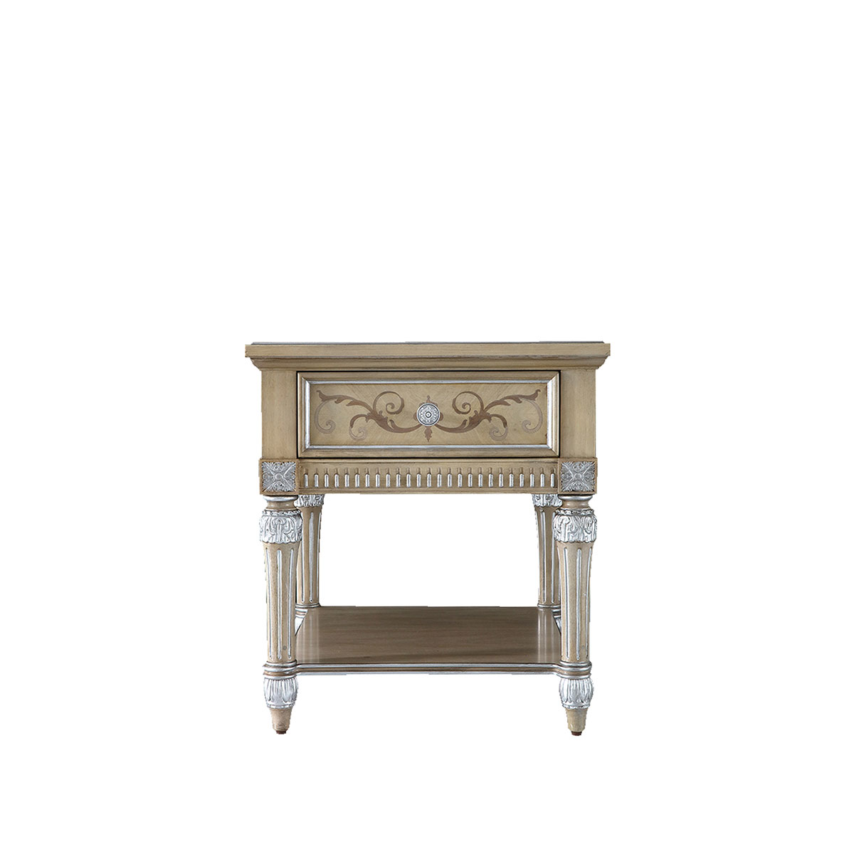 以意大利美麗而古老的城市維羅納為設(shè)計(jì)靈感,采用了清新動(dòng)人的花草手繪與帶仿古效果的色澤痕跡,來(lái)表現(xiàn)出藝術(shù)家具獨(dú)特的氣質(zhì)和內(nèi)涵,配以閃耀的涂金工藝與古董白配色,精彩演繹了意大利人對(duì)奢華絢麗的寵愛(ài)。