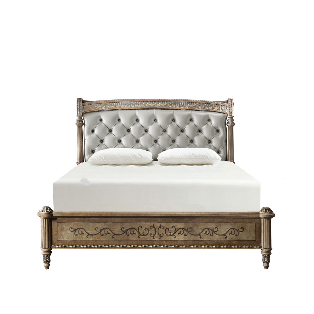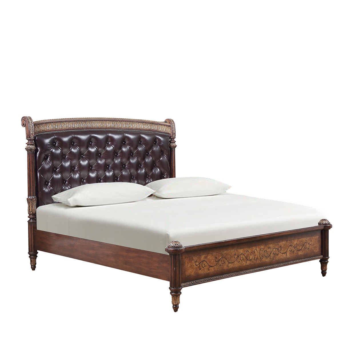 橡膠木+鵝掌楸木+環(huán)保人造板+橡木皮+白栓樹瘤、楓木、裝飾線條等木皮貼面+海綿+皮藝