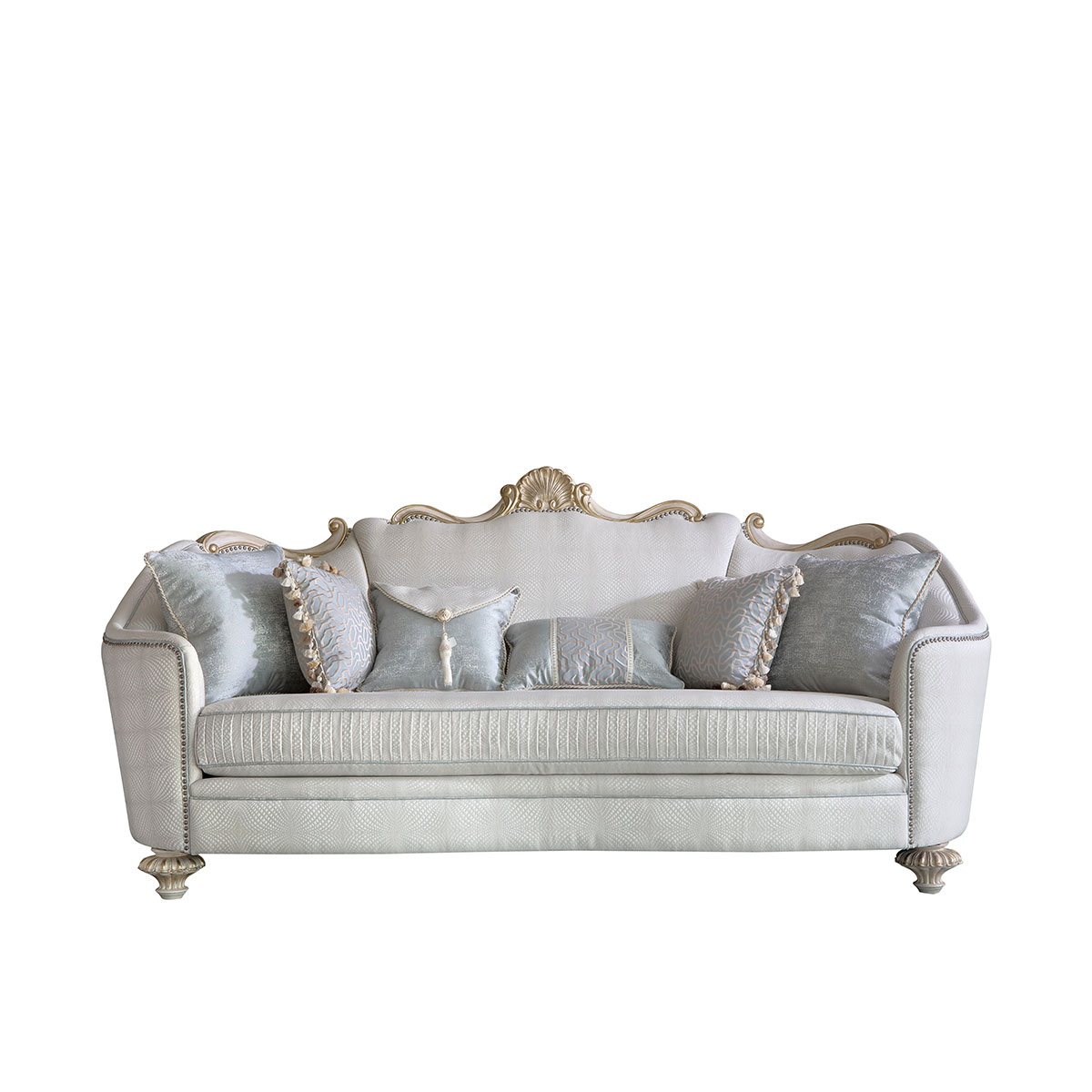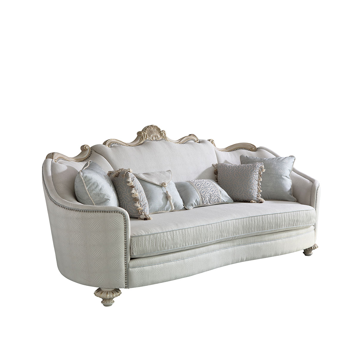 "* 坐墊和靠背包有豐厚的填充物; * 標(biāo)配抱枕: 6個 * 提供多種面料可供選擇"