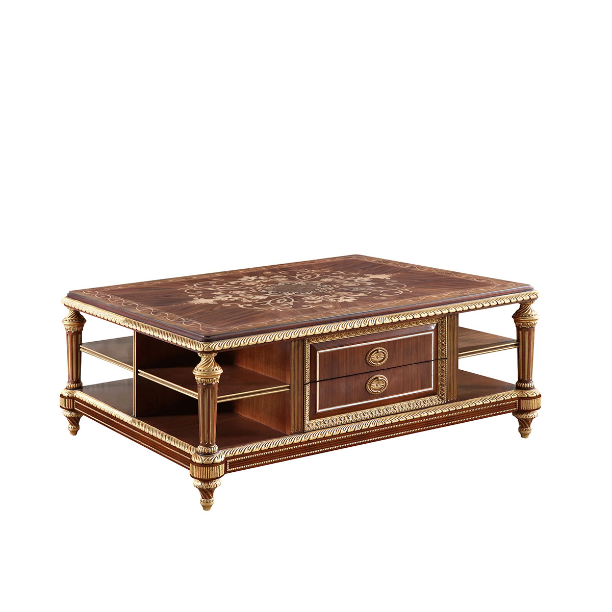 * 帶槽紋的錐形腿象征權力的堅不可摧,英國皇室家具御用的桃花心木飾以珍稀木皮彰顯傳世價值,綺麗華美的花朵雕刻與拼花圖案,則寄托了王室貴族對古典藝術的鐘愛。