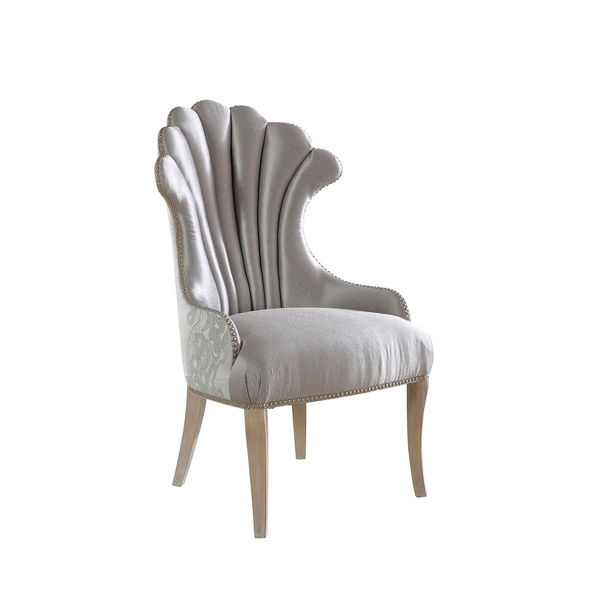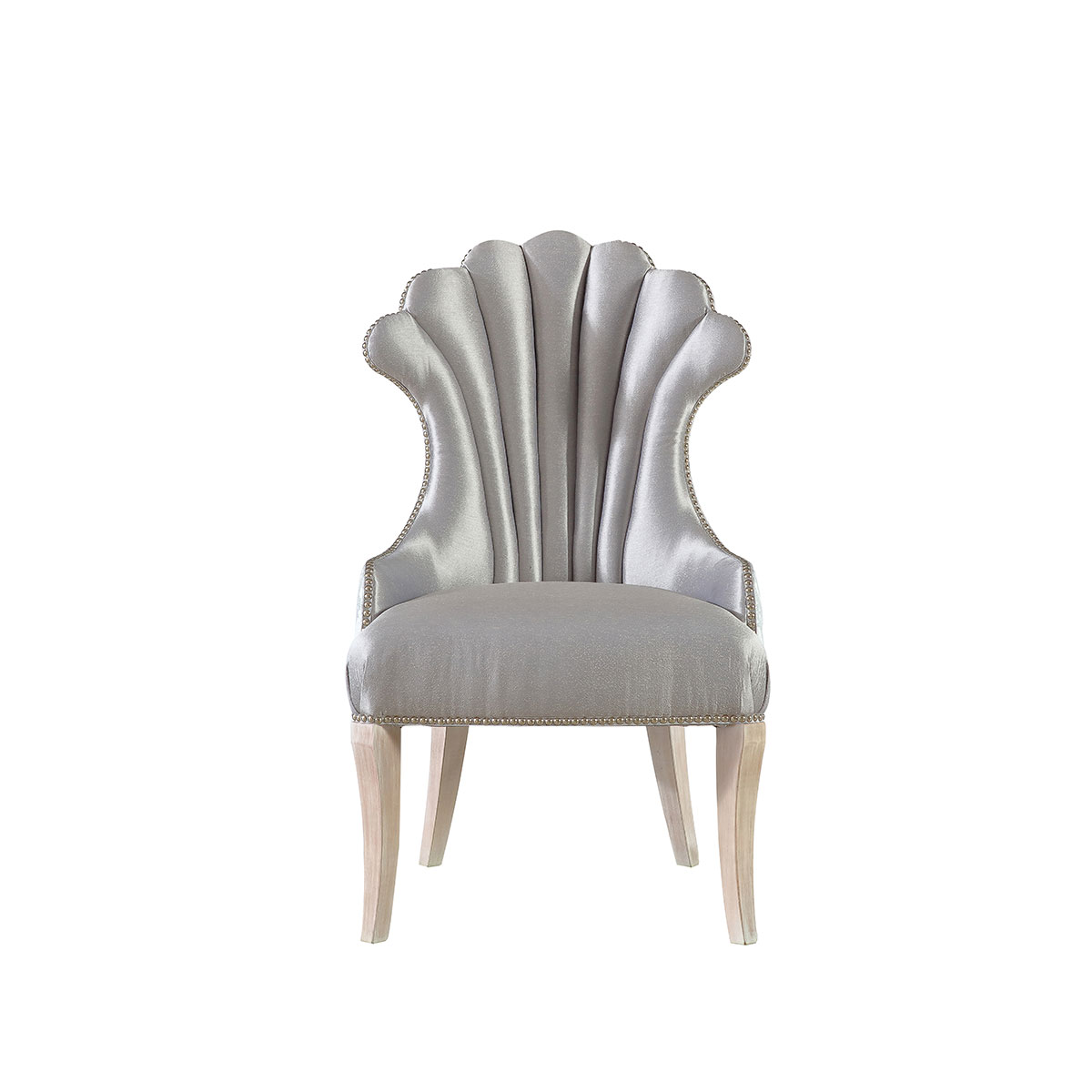 新古典主義去蕪存菁,貝殼狀的椅子富有東方女性的典雅美,造型開(kāi)放而包容;錢(qián)貝圖騰元素,寓意財(cái)運(yùn)源源。將洛可可風(fēng)格中對(duì)自然的表達(dá)、動(dòng)感的弧線和雕刻、貝殼等工藝運(yùn)用得融會(huì)貫通。