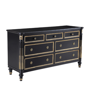 * 為表現(xiàn)法國(guó)路易時(shí)期的莊嚴(yán)和浪漫,以法國(guó)凡爾賽宮為設(shè)計(jì)元素。使用歌頌路易十四時(shí)期的太陽(yáng)花雕刻,顯示其王權(quán)穩(wěn)固地位的錐形腿腳設(shè)計(jì);配以哥特式建筑中的大圓窗骨架設(shè)計(jì)與優(yōu)美的拉扣設(shè)計(jì),完美演繹了法式宮廷家具的奢華尊貴。