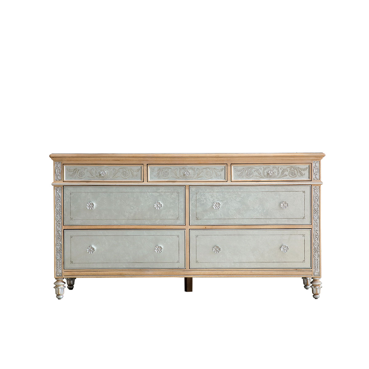 橡膠木+環(huán)保人造板+黑胡桃+艷陽花+櫻桃木等木皮貼面+藝術玻璃