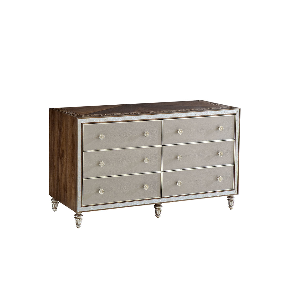 橡膠木+環(huán)保人造板+貝殼+黑胡桃+艷陽花+櫻桃木等木皮貼面+皮革