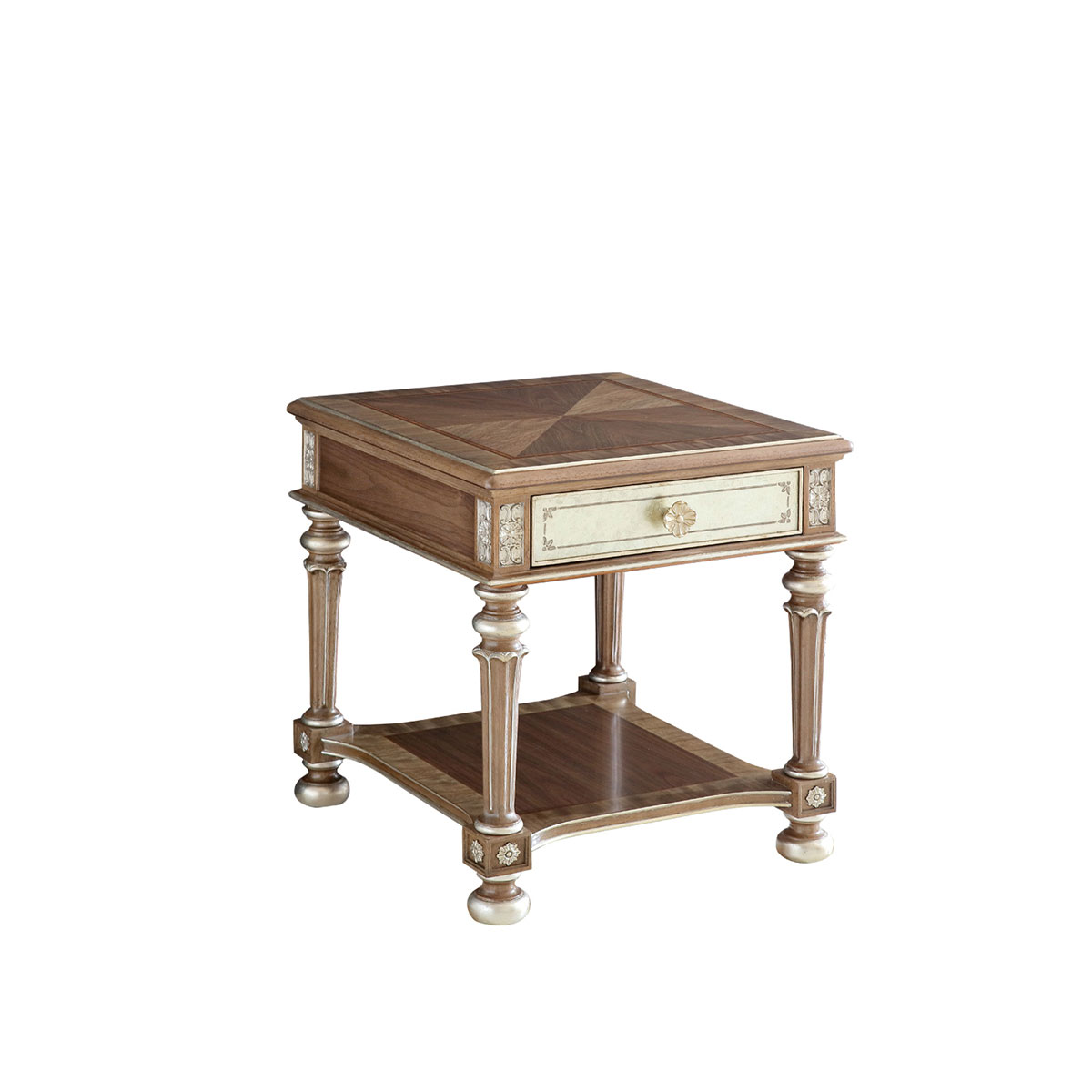 橡膠木+環(huán)保人造板+黑胡桃+艷陽花+櫻桃木等木皮貼面+彩繪玻璃