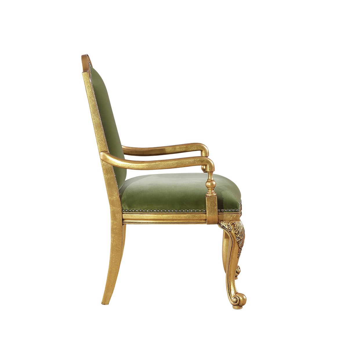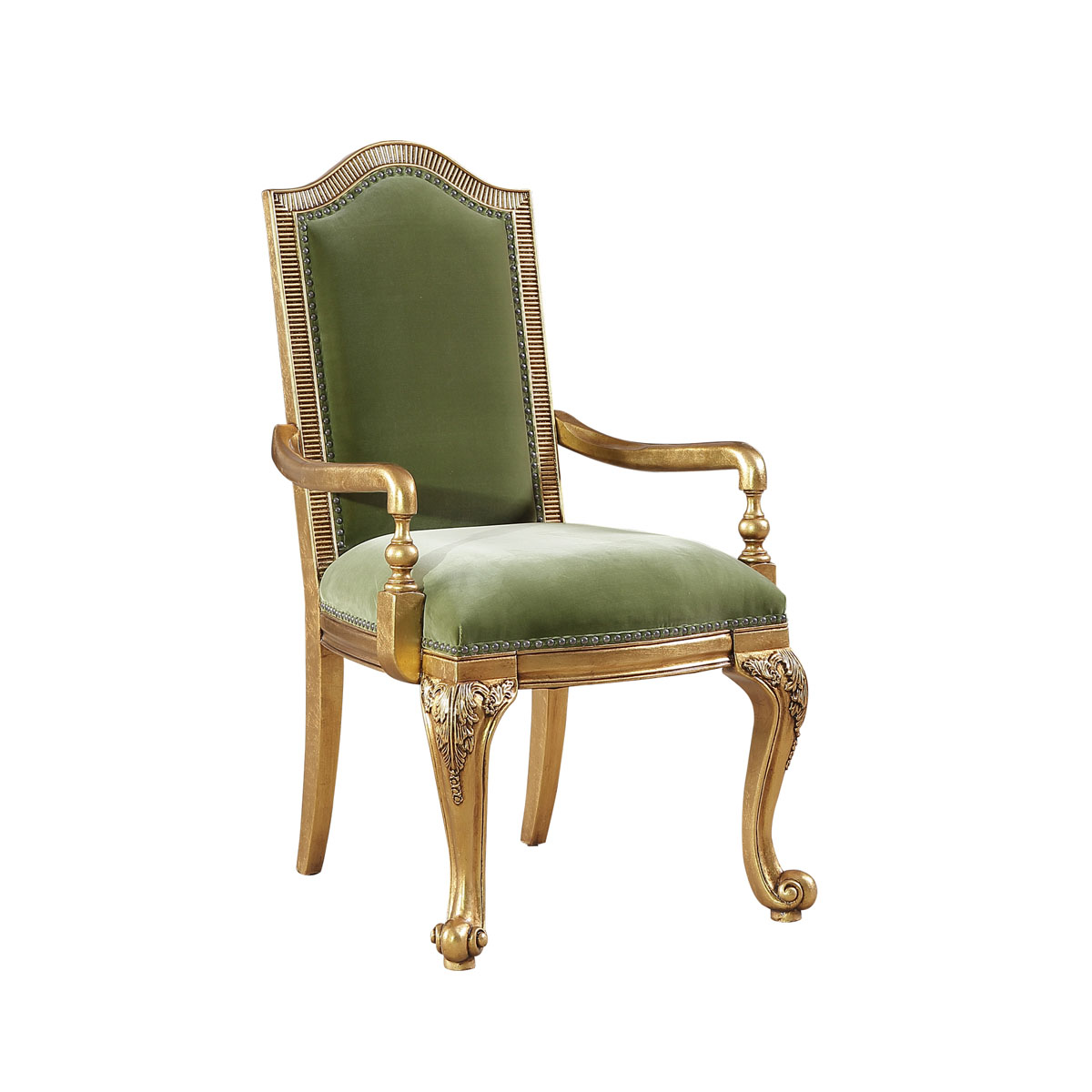 * 為表現(xiàn)英國(guó)皇室和歐洲各國(guó)互相的影響,以英國(guó)溫莎堡中的法式元素為設(shè)計(jì)意念。通過法式彎腿和 Acanthus(阿坎瑟斯)卷葉雕刻的結(jié)合,貼金工藝和法式 Camelback(駱駝背)線條設(shè)計(jì)表達(dá)。配上觸感柔軟的布藝和包有豐厚填充物的坐墊和靠背,是豪華系列溫莎堡英式扶手椅的特色。
