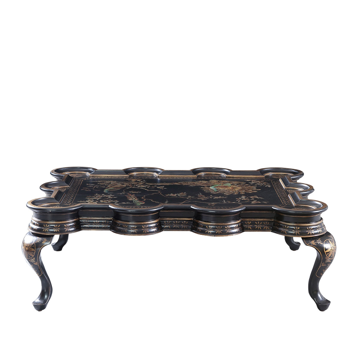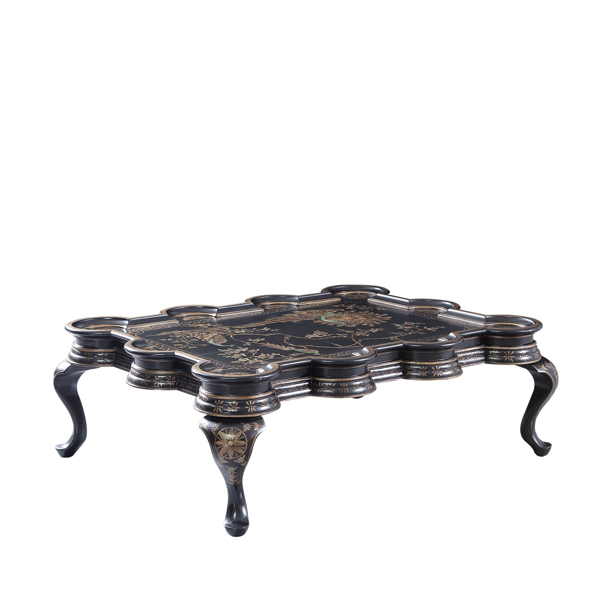 * 為表現英國皇室在中西方文化交流時期的重要地位,以英國溫莎堡為設計元素。使用高貴的孔雀彩繪主題和安妮女王時期的彎腿設計,彰顯了尊貴的古雅品味。搭配不規則的造型和極具中國情調的黑金色,經典再現了18世紀英國皇室熱衷東方元素的家居文化潮流。