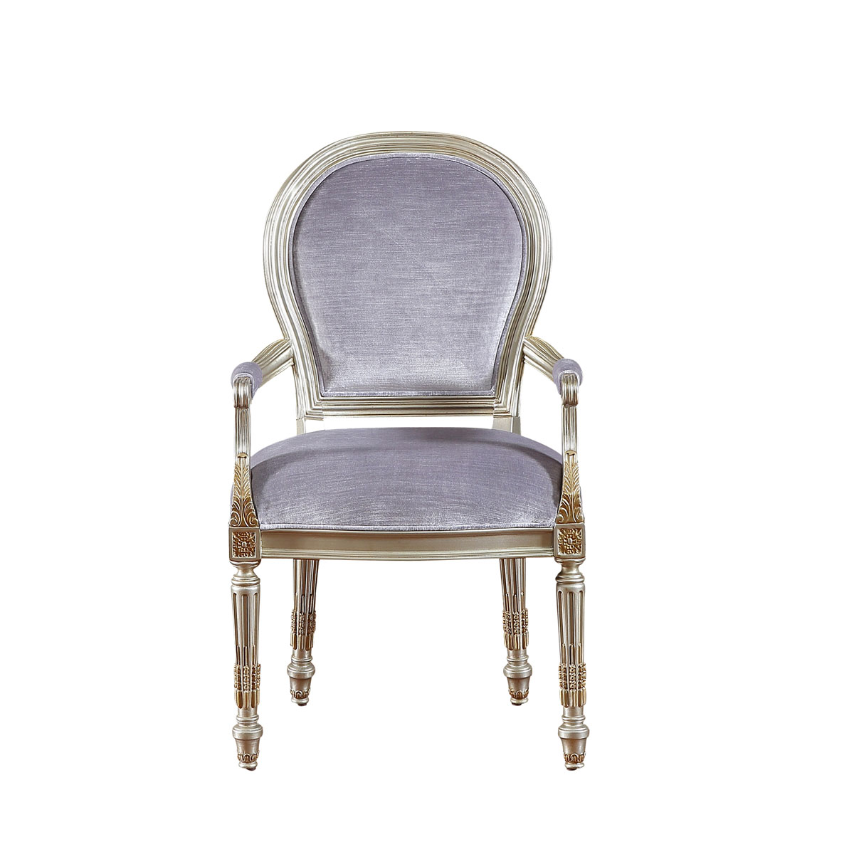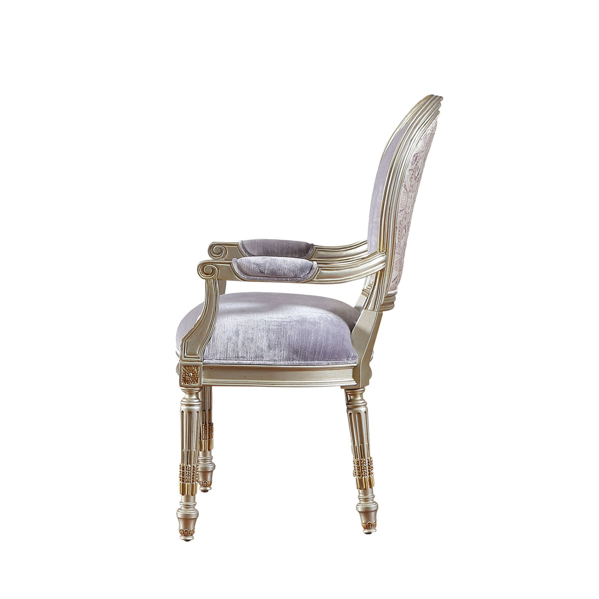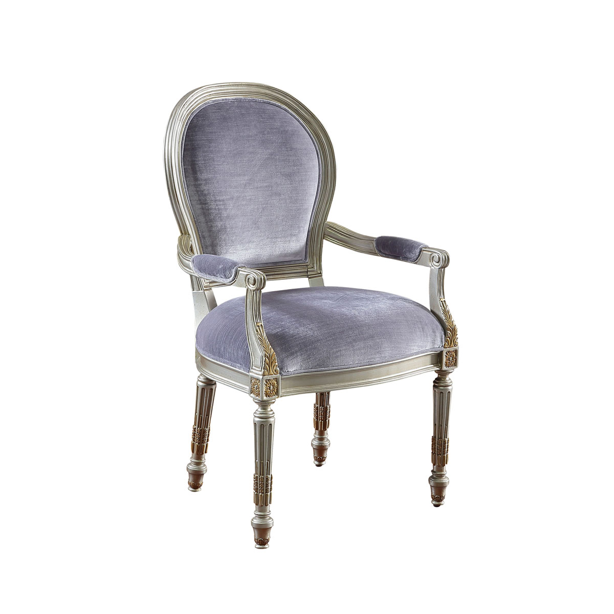 * 參考路易十六時(shí)期的古董造型設(shè)計(jì),使用小提琴構(gòu)造椅背和路易十六時(shí)期的建筑柱雕刻柱,配以精致的手工雕刻細(xì)節(jié)和涂金工藝、舒適的布藝面料和厚實(shí)柔軟的填充物,是豪華系列凡爾賽玫瑰法式扶手椅的特色。