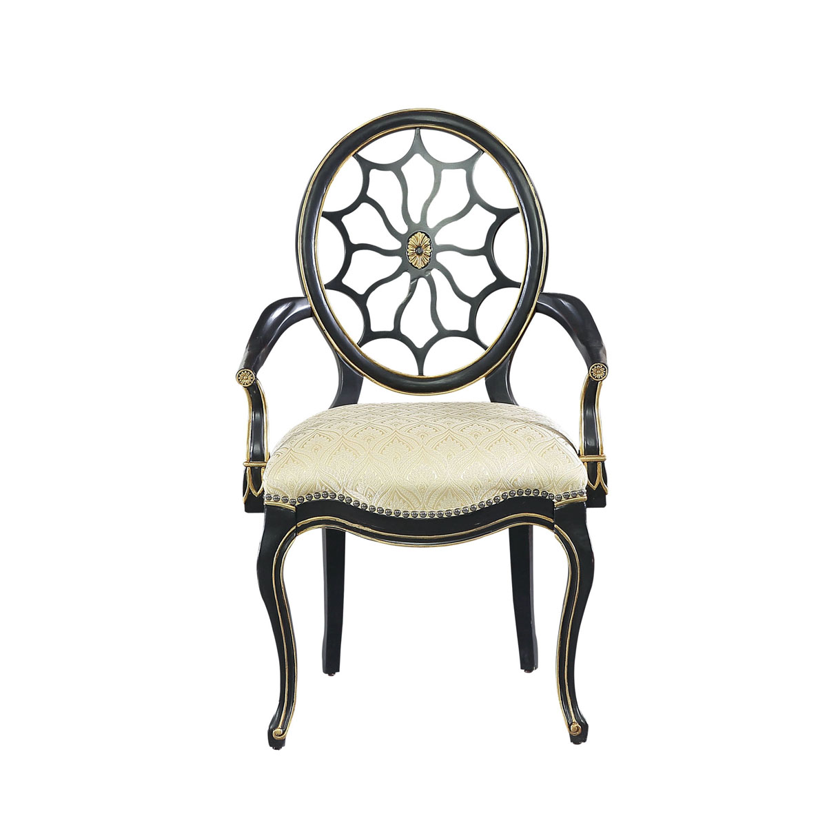 * 以喬治三世時(shí)期的古董家具為靈感,使用船舵造型椅背和安妮王后腿,配以精致的手工雕刻細(xì)節(jié)和涂金工藝、浪漫的花形布藝和厚實(shí)柔軟的填充物,完美演繹了法式宮廷家具的奢華尊貴。