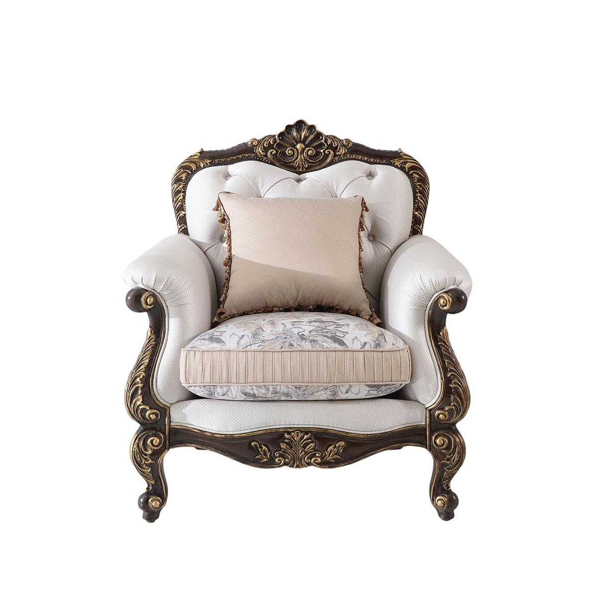 * 線條行的沙發(fā)造型猶如香頌般高低起伏的音律, 精致的實(shí)木雕刻是其中曼妙的點(diǎn)綴, 雙重觸感的軟包部分帶來(lái)杜樂(lè)麗花園的休閑愜意。