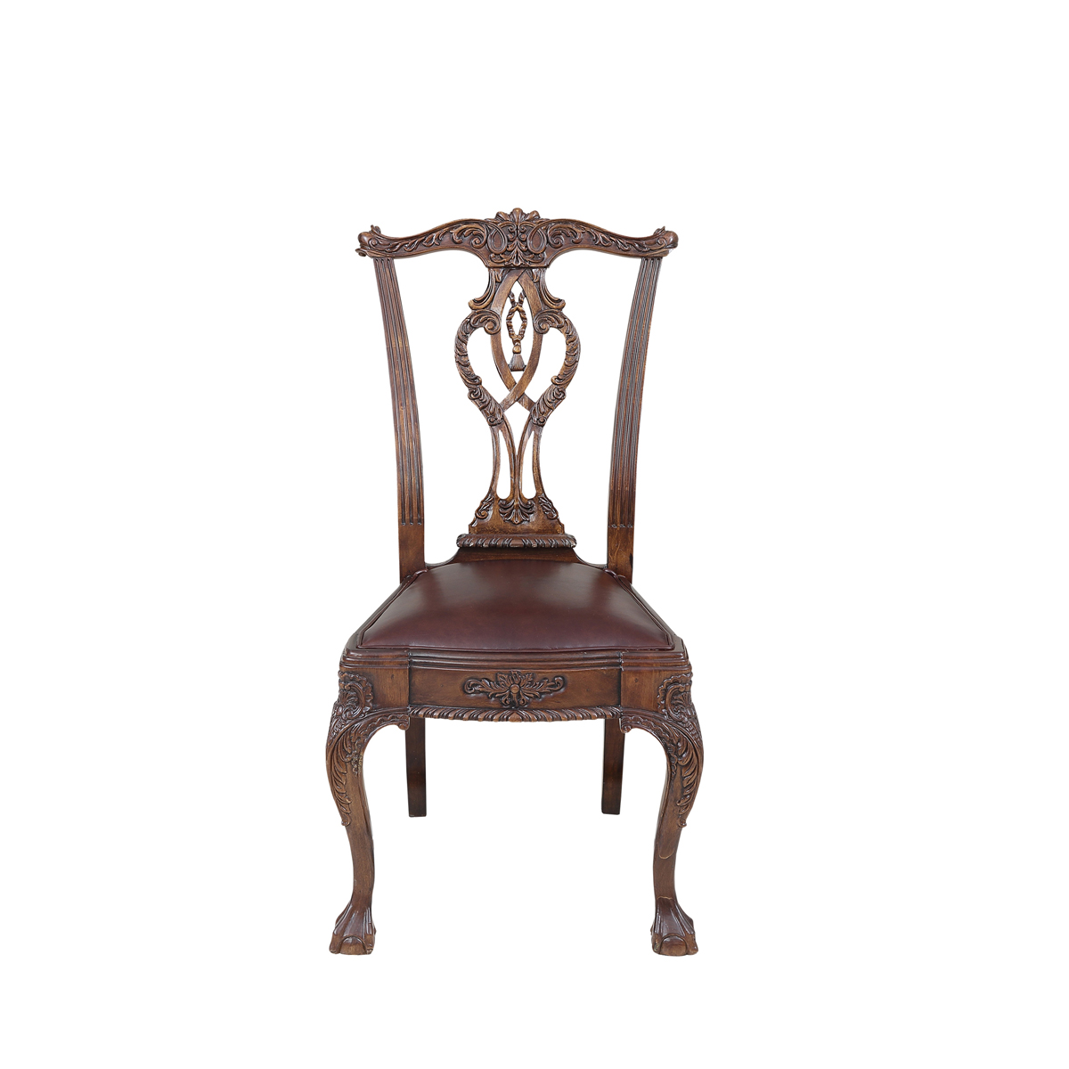 * 以明式家具為藍本的 Chippendale(齊彭代爾式)鏤空椅背和與卷葉雕刻結合的獸抓球彎腿設計, 表達美國對英國潮流和中國文化的向往; 配以過百款布藝和皮革選擇, 讓傳統風格充滿獨特性, 是豪華系列溫莎堡英式扶手椅的特色。