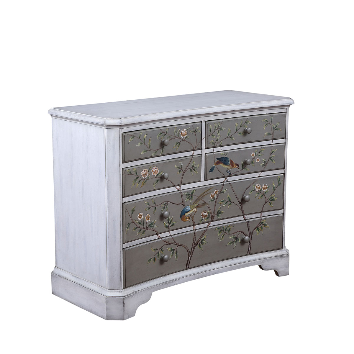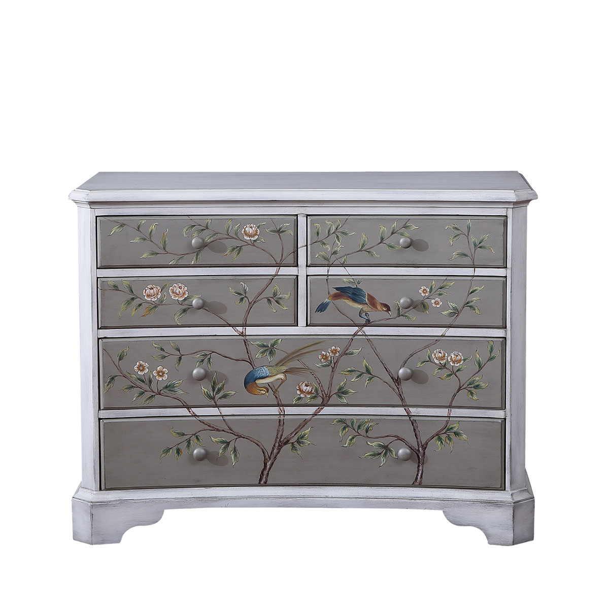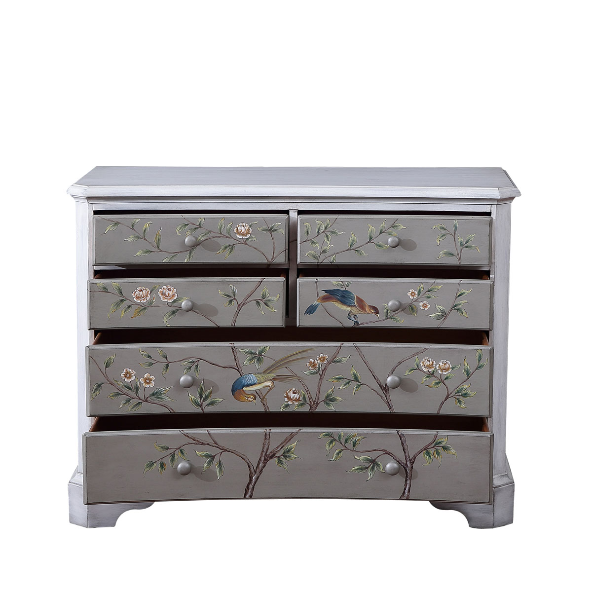* 花紋圖案都是經過專業工藝師精心繪制而成, 所以每件產品都是獨一無二的; * 6個儲物抽斗,底部采用硬木實木滑軌; * 底部裝有可調整腳釘;