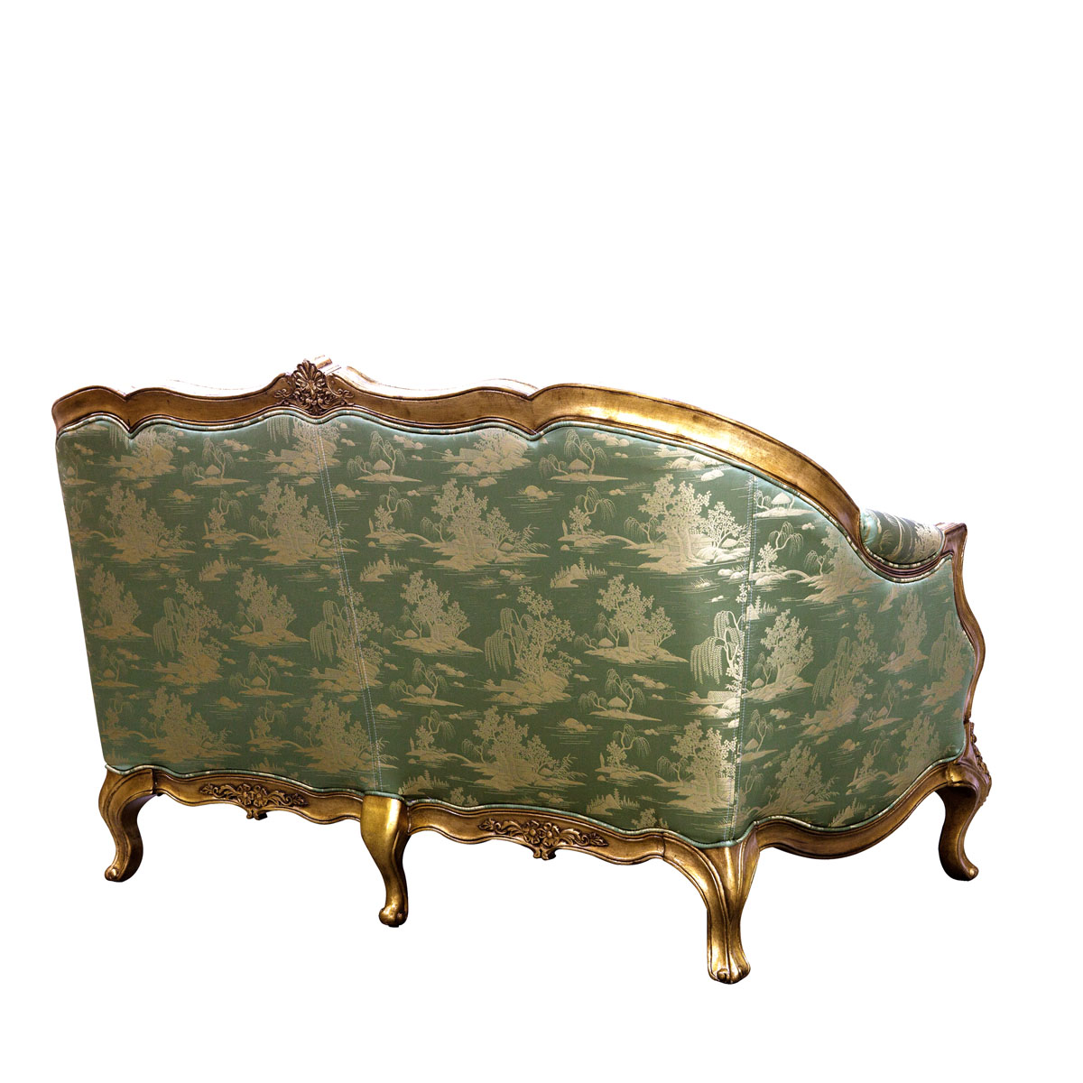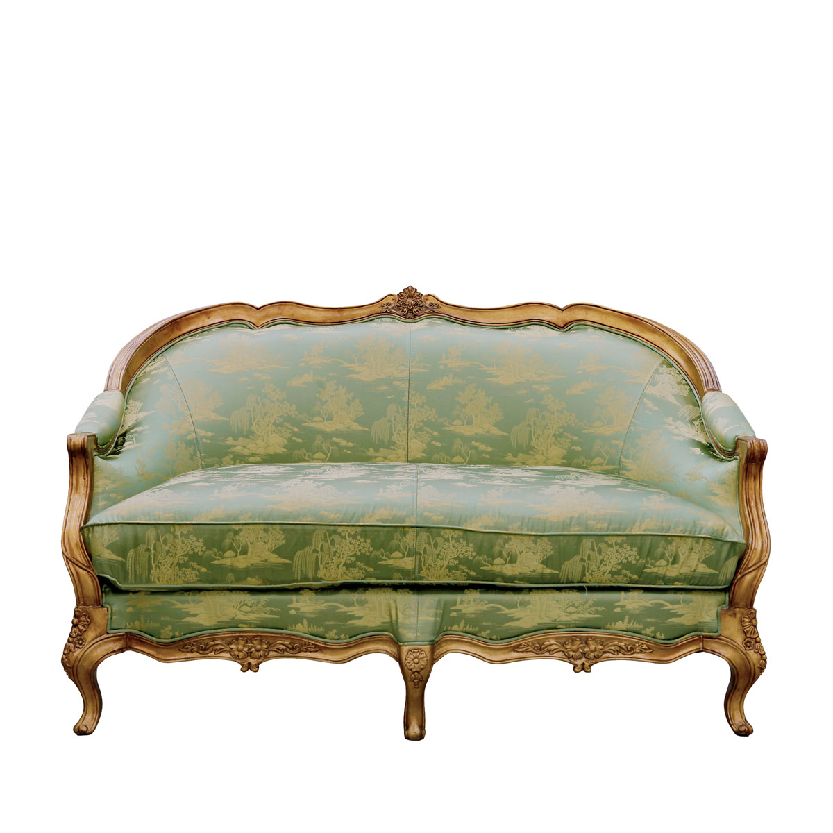 * 從法國十八世紀(jì)初攝政時期的風(fēng)格中汲取靈感制作而成,采用了同風(fēng)格的彎腳設(shè)計,阿坎瑟斯葉雕刻造型和金箔貼飾,再飾以中國山水圖案的絲綢和包有豐厚的填充物坐墊和靠背,使得這款沙發(fā)閃耀著華麗高貴的光環(huán);