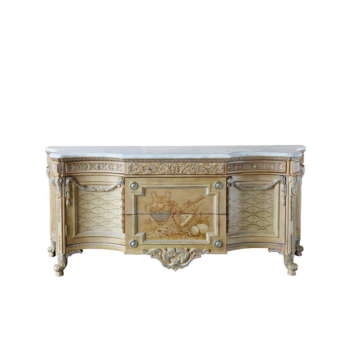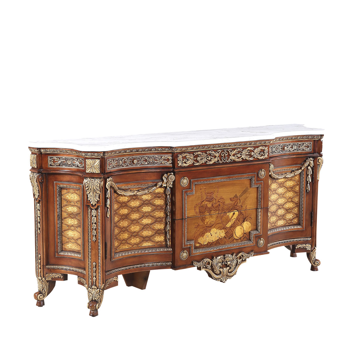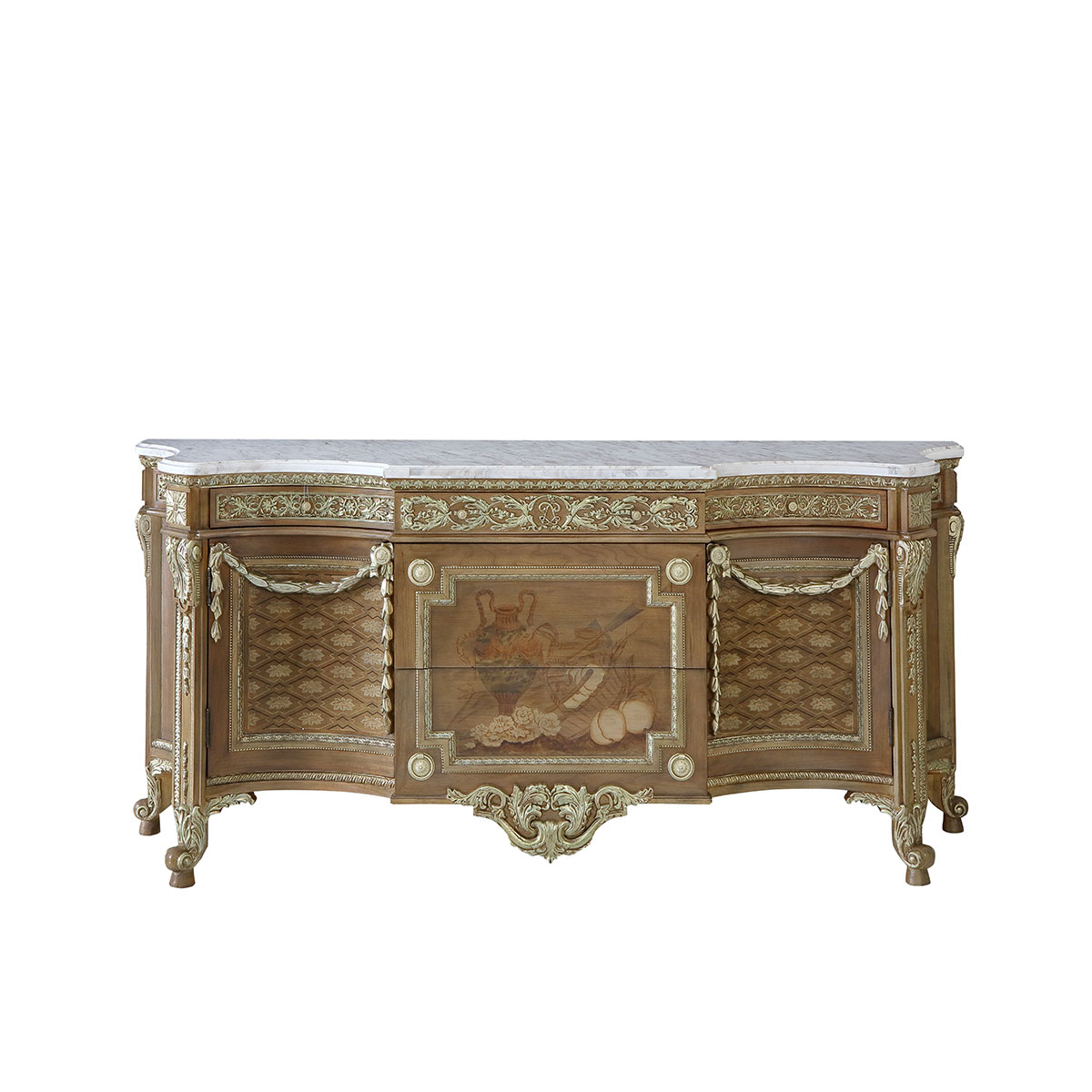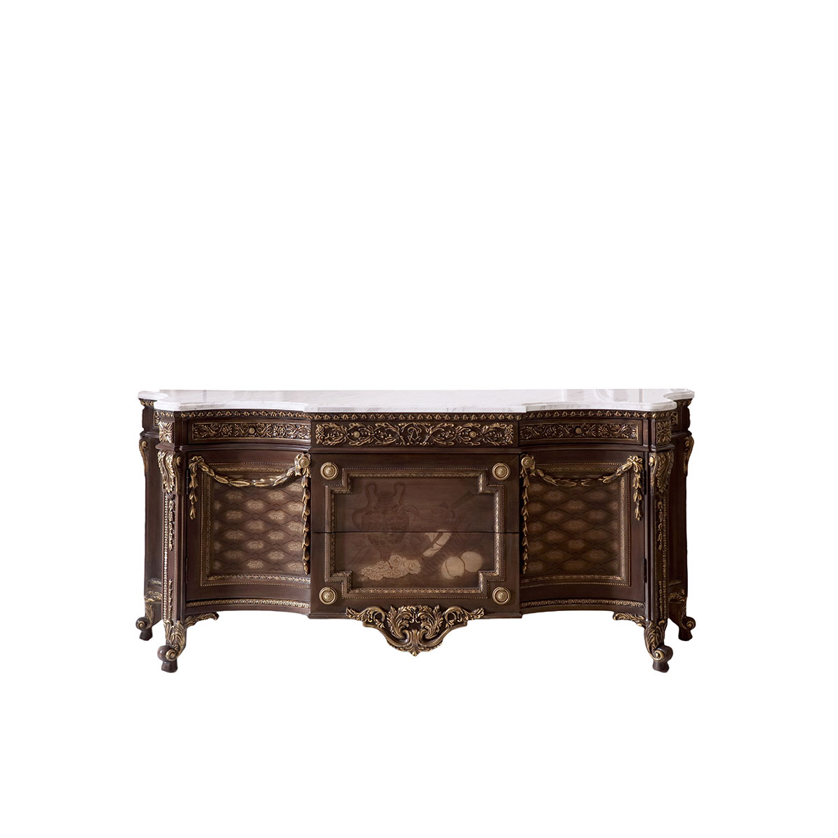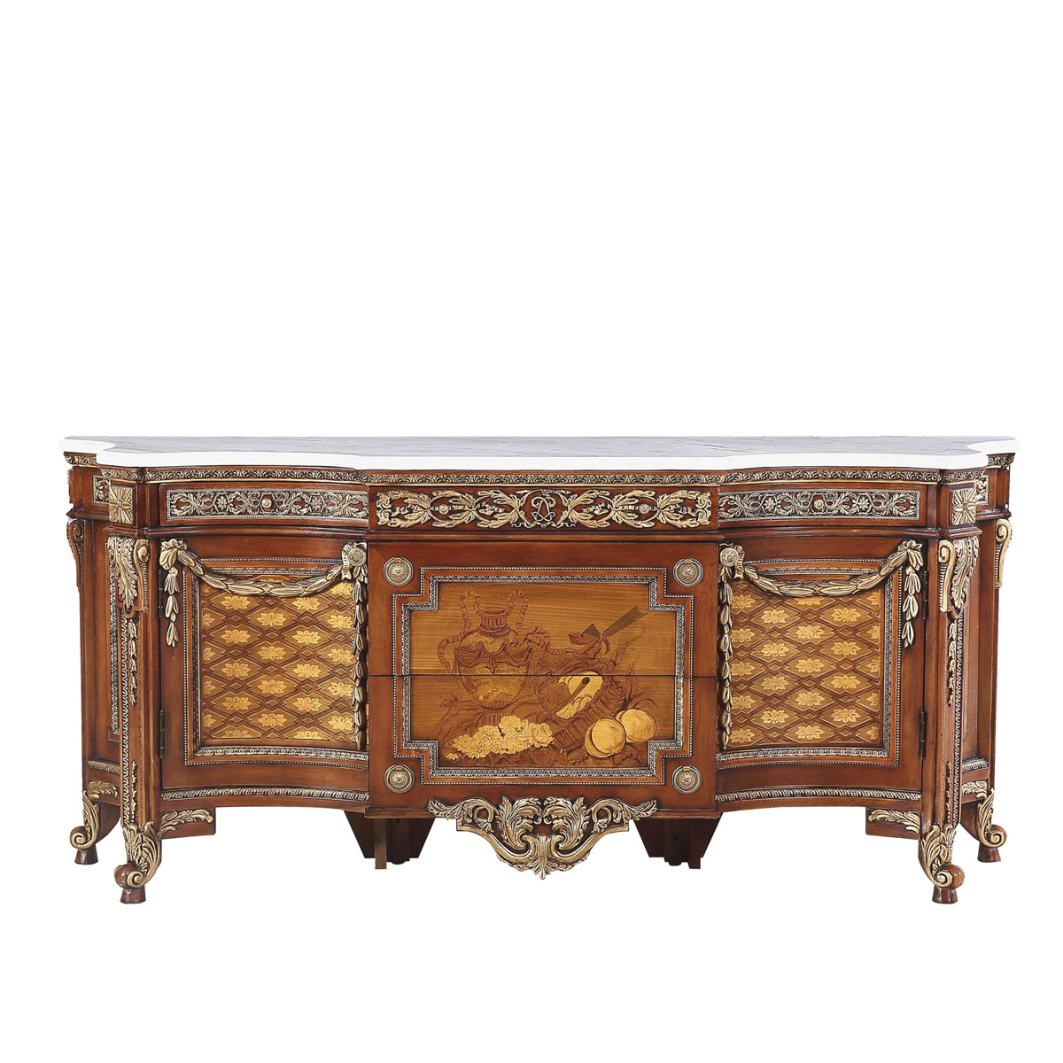 * 以法國著名工匠 Jean Henri Riesener 為 Louis VXI (路易十六)設計的新古典風格古董柜為靈感,四平八穩的方形設計配以細膩的雕刻與實木簿片鑲嵌,呈現出法國宮廷的浪漫。