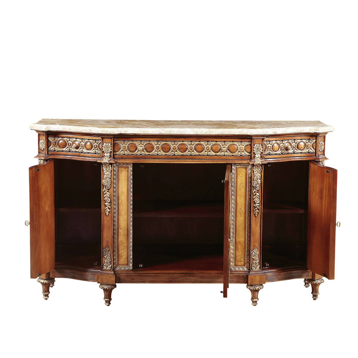 * 手工雕刻的工藝細(xì)節(jié),結(jié)實(shí)的連接技術(shù); * 光滑的花崗巖石表面; * 三個(gè)儲(chǔ)物抽斗,其底部采用經(jīng)典硬木實(shí)木滑軌設(shè)計(jì); * 三扇實(shí)木門板,門內(nèi)各有一塊可調(diào)層板; * 底部裝有可調(diào)腳釘;
