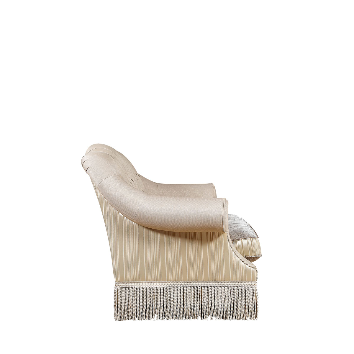 * 獨特的拉扣工藝,線條優美的坐墊和裙腳的流蘚設計,獨特的抱枕配搭和包有豐厚的填充物坐墊和靠背。這款沙發表現了法國人獨有的浪漫和對舒適的追求。