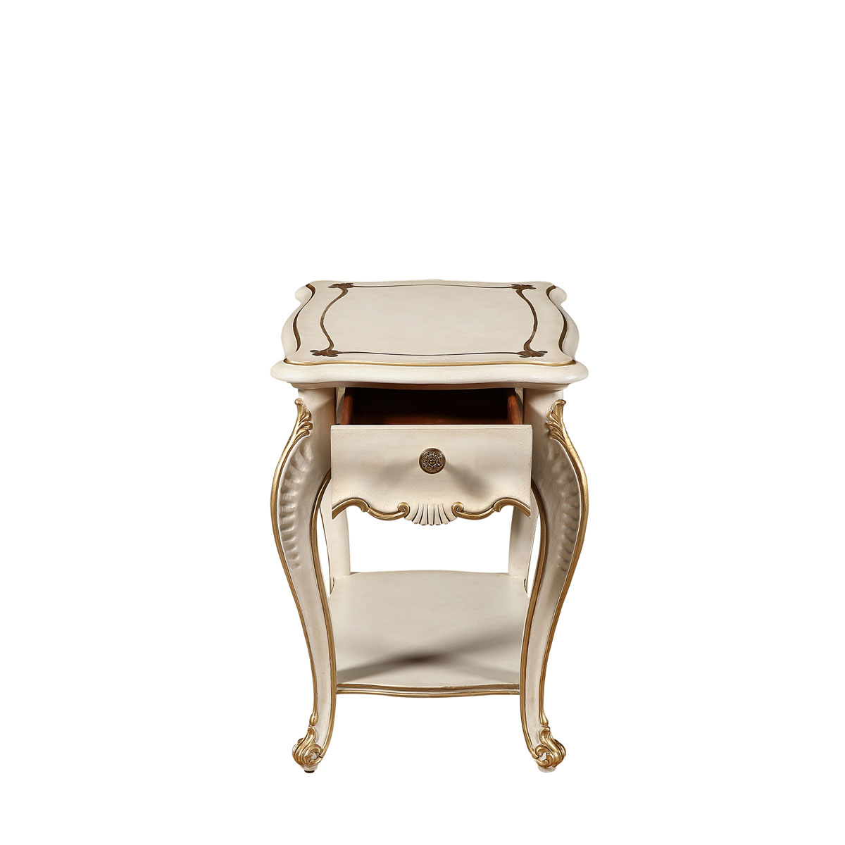 * 手工雕刻的工藝細(xì)節(jié)結(jié)實(shí)的連接技術(shù)18道以上的多步驟油漆工藝 * 一個(gè)儲(chǔ)物抽斗,其底部采用經(jīng)典的硬木實(shí)木滑軌 * 底部的層板可放置家庭裝飾品; * 腳可拆裝 * 底部裝有四個(gè)調(diào)整腳釘;