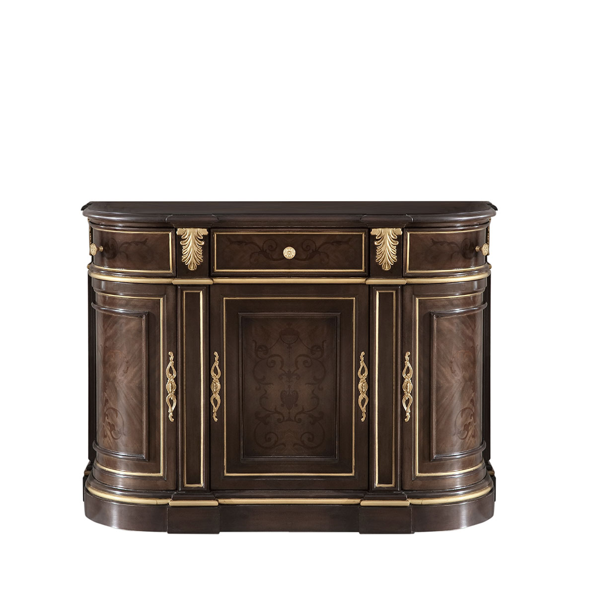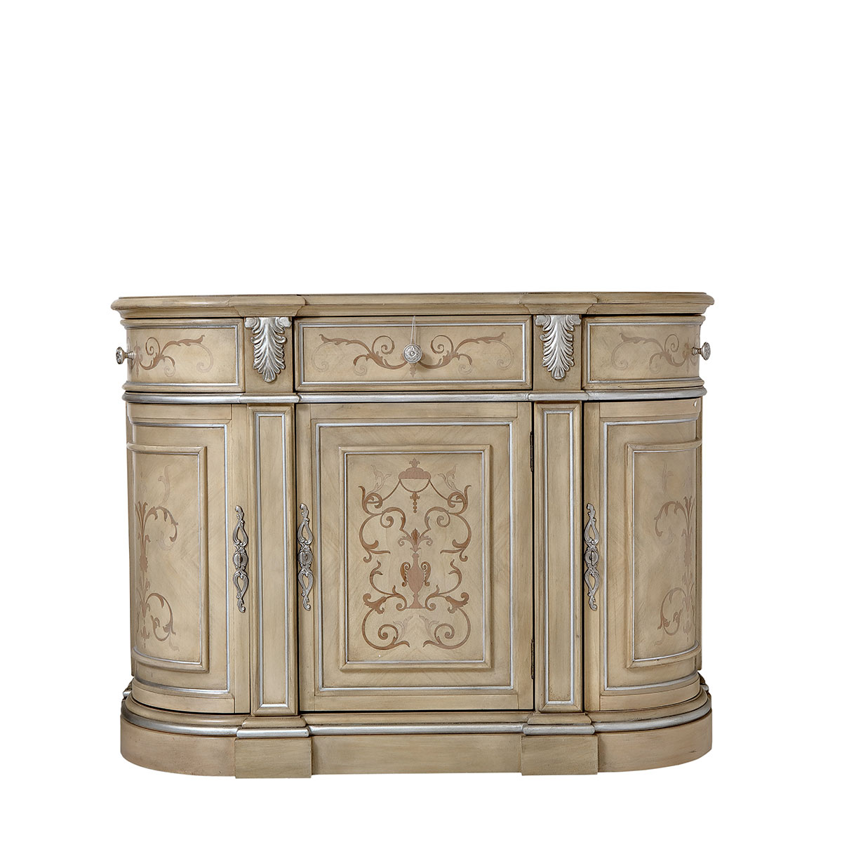 * 可作為臥室、餐廳、客廳或休息室的理想家具; * 三個儲物抽斗,底部采用硬木實木滑軌; * 三扇實木門板,門內各有一塊可調層板; * 腳底部裝有可調腳釘;