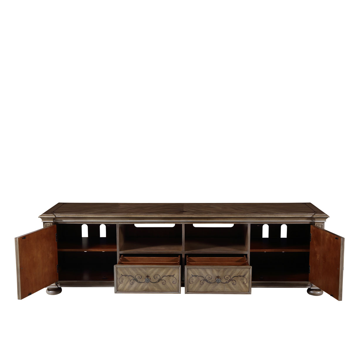 * 中間兩個儲物抽斗配有CD/DVD隔板,可CD/DVD更好的存放,其底部采用經(jīng)典硬木實木滑軌設(shè)計; * 兩扇門內(nèi)各有一塊可調(diào)層板;上部為開空設(shè)計,可在內(nèi)放播放器等電子器材; * 腳底部裝有可調(diào)腳釘;