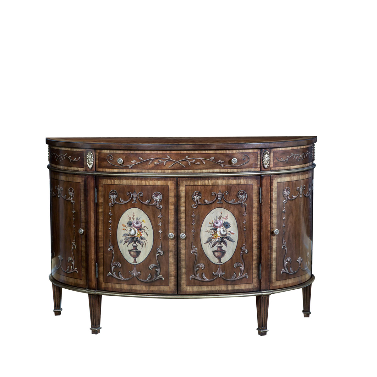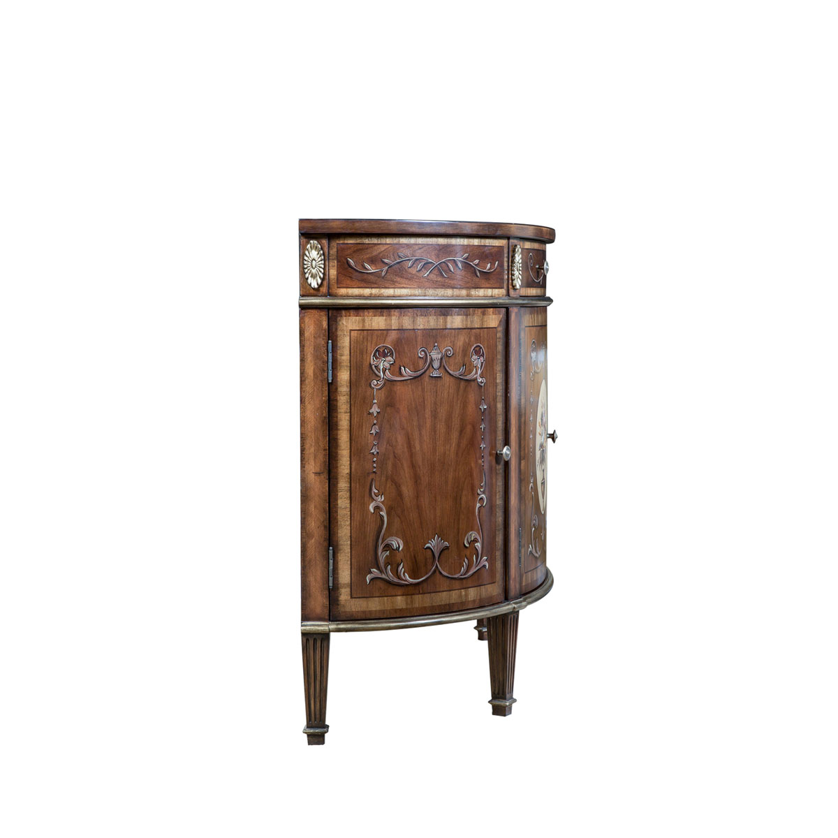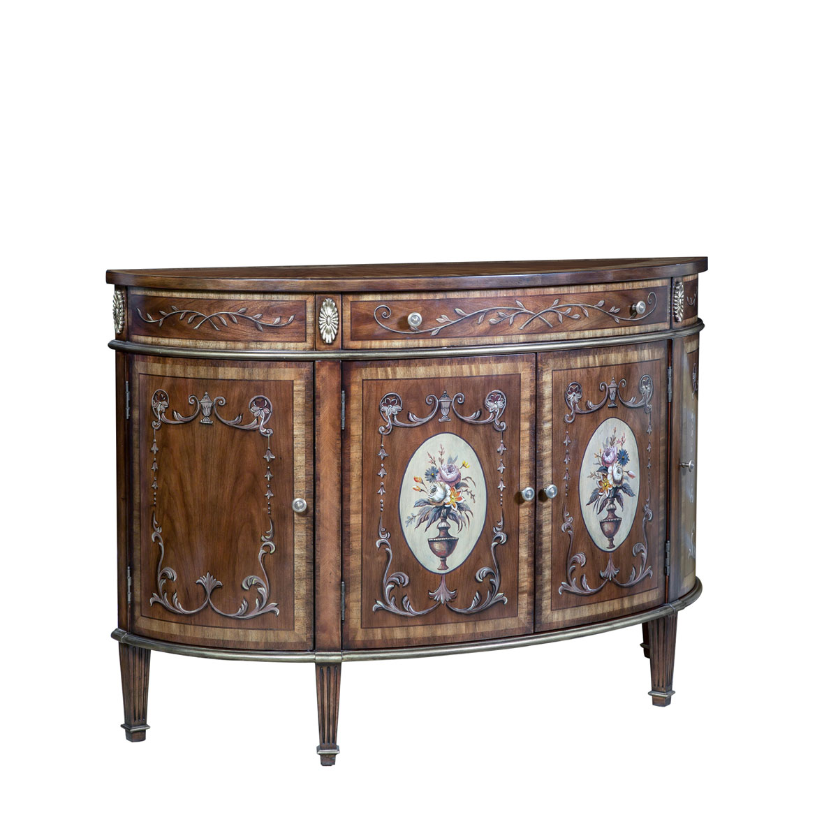 * 花紋圖案都是經過專業工藝師精心繪制而成, 所以每件產品都是獨一無二的; * 一個儲物抽斗,底部采用硬木實木滑軌 * 4扇彩繪實木門板,門內各在一塊層板 * 腳底部裝有可調腳釘;