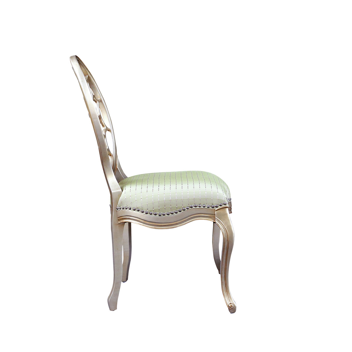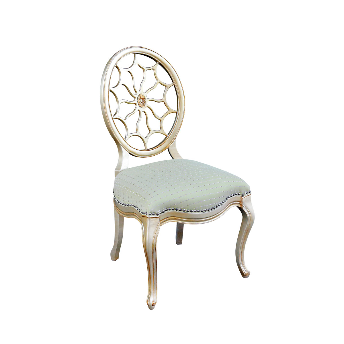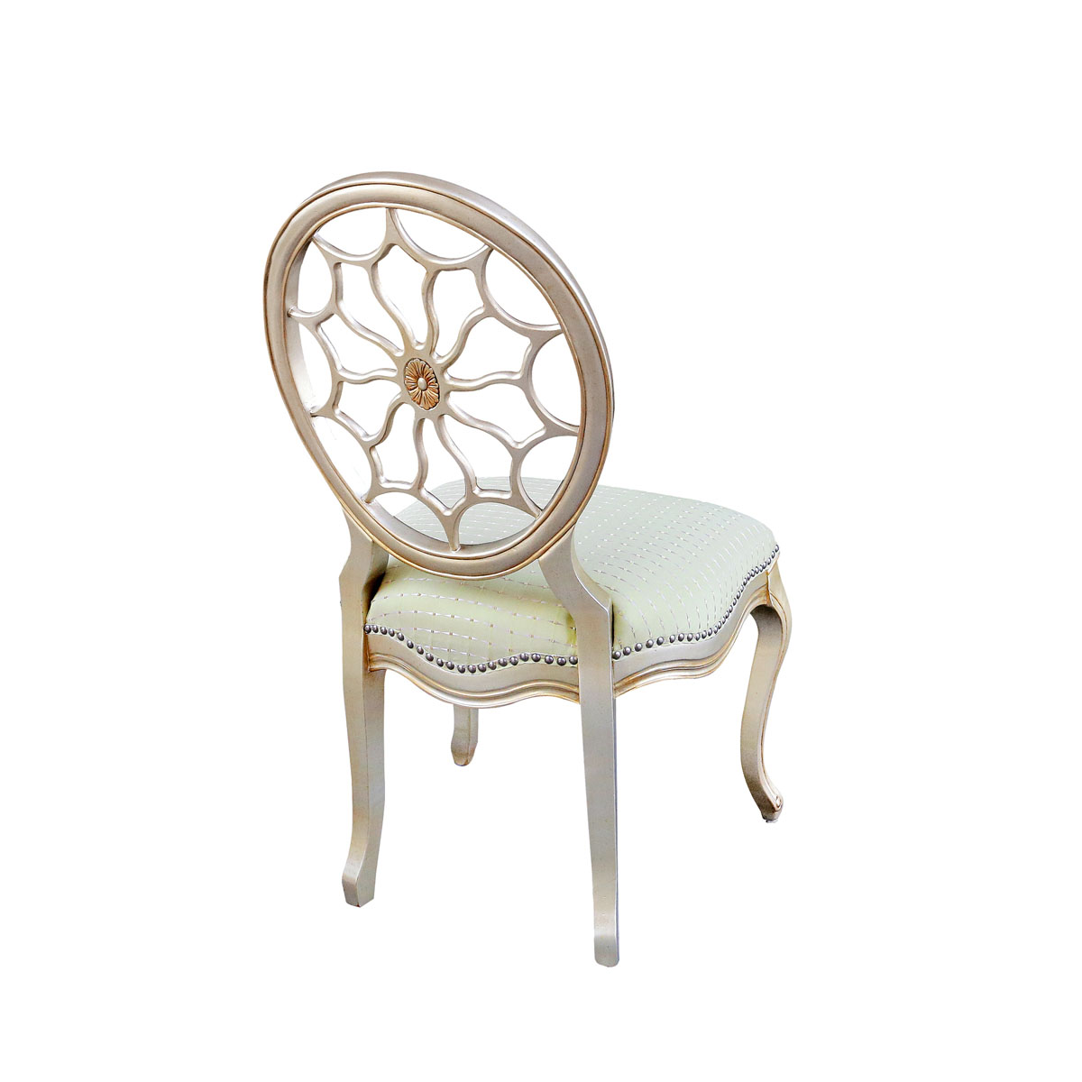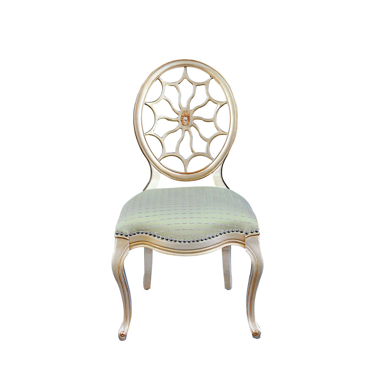 * 參考喬治三世時(shí)期的古董造型設(shè)計(jì),使用輪子構(gòu)造椅背和安妮王后腿,配以精致的手工雕刻細(xì)節(jié)和涂金工藝、浪漫的花形布藝面料和厚實(shí)柔軟的填充物,是豪華系列凡爾賽玫瑰法式單椅的特色。