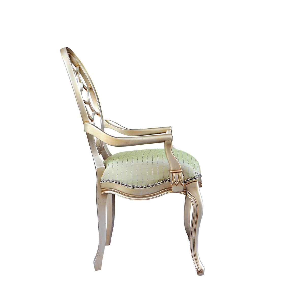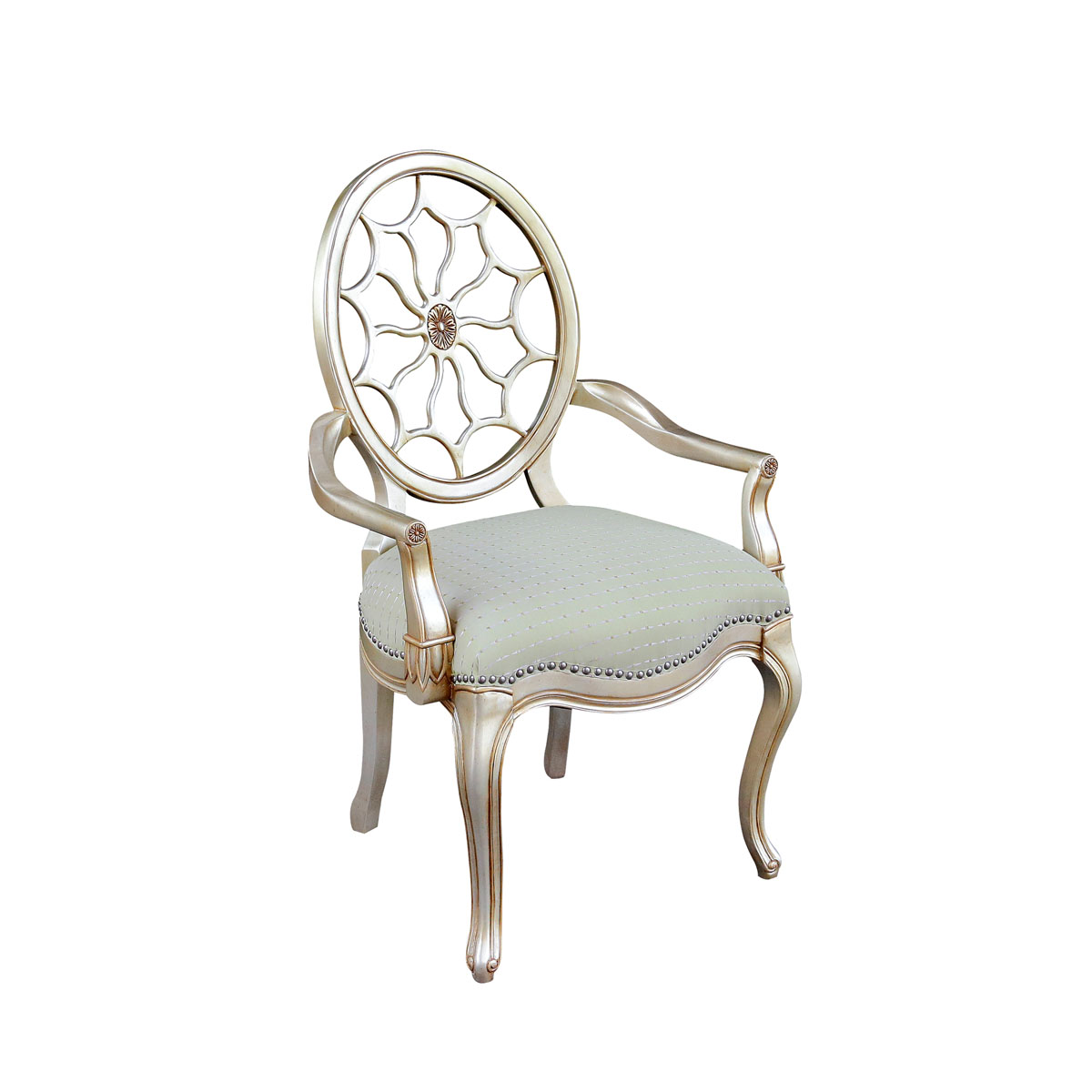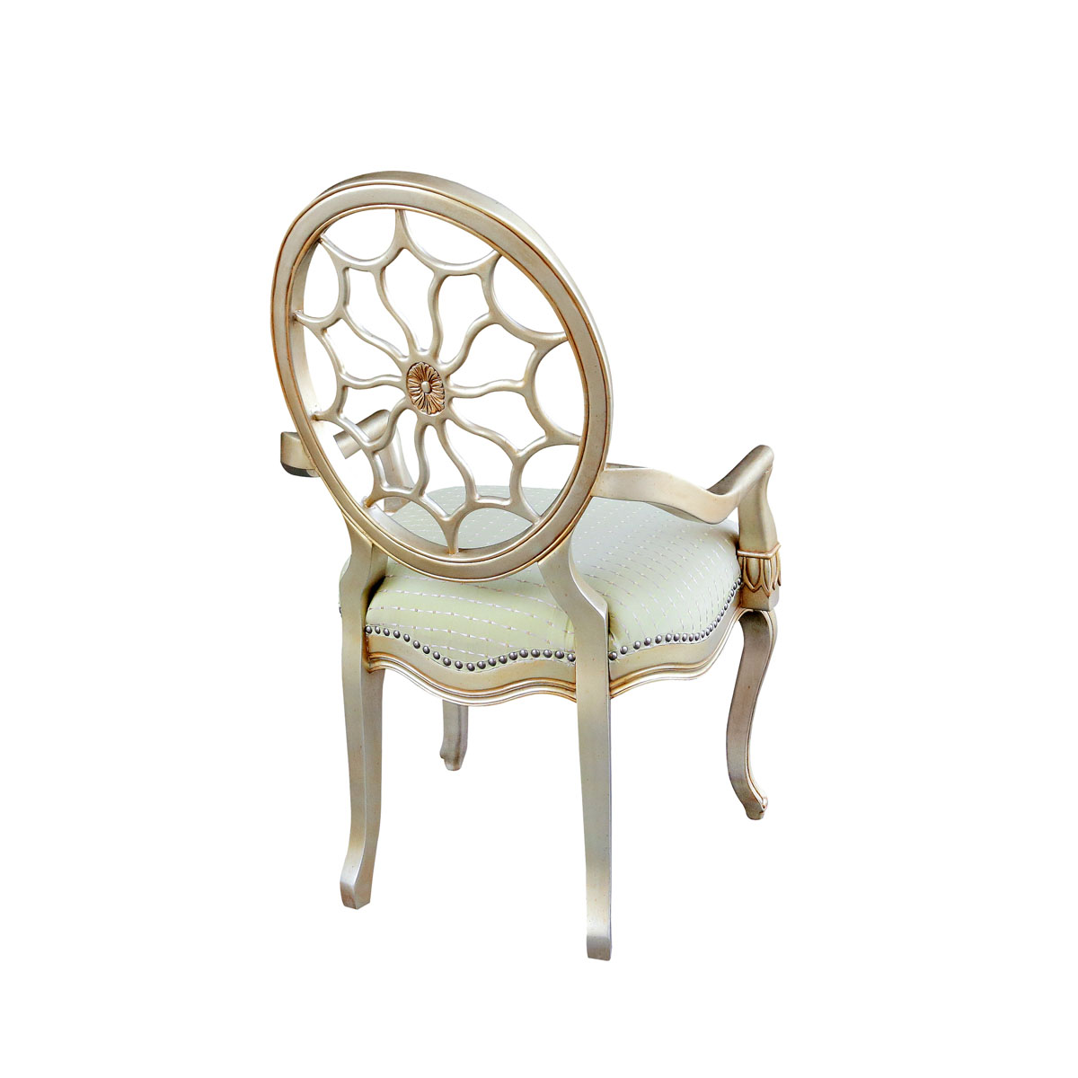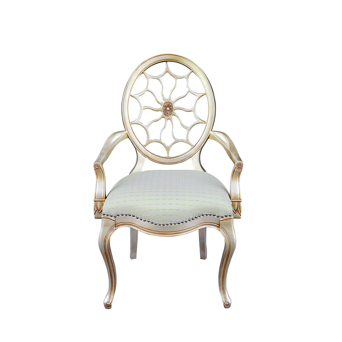 * 參考喬治三世時期的古董造型設(shè)計,使用輪子構(gòu)造椅背和安妮王后腿,配以精致的手工雕刻細(xì)節(jié)和涂金工藝、布藝面料和厚實柔軟的填充物,是豪華系列凡爾賽玫瑰法式扶手椅的特色。