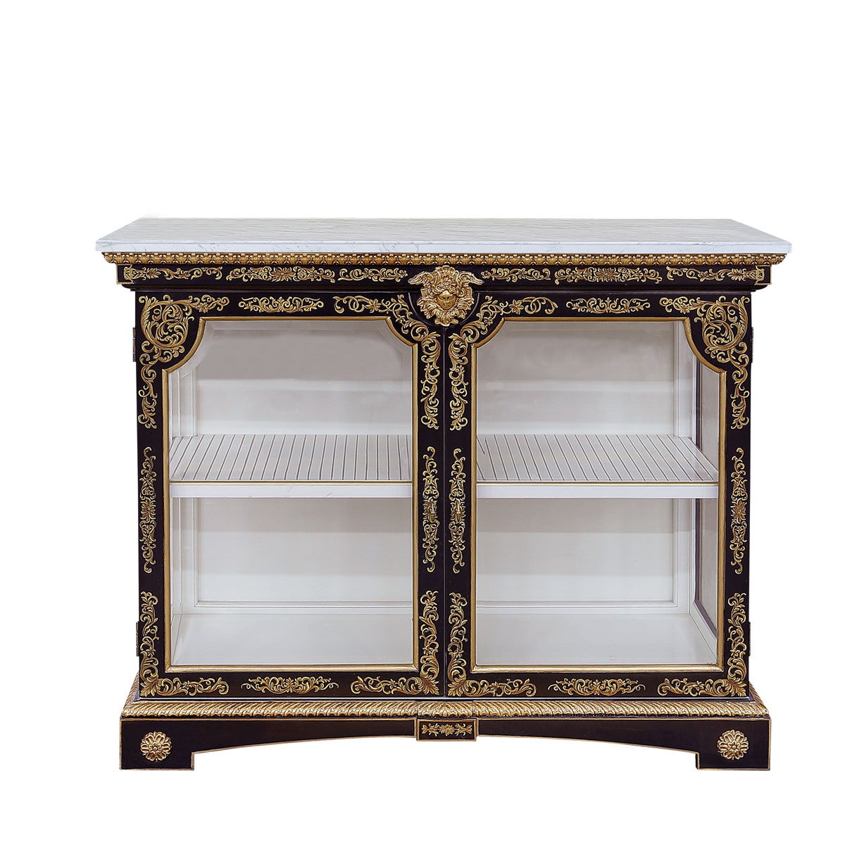 * 這是設(shè)計(jì)意念來自于英國(guó)溫莎堡中安妮女王時(shí)期的玄關(guān)柜。柜門上的花草彩繪是觀賞園藝的寫照。羅馬短劍裝飾花紋,則表現(xiàn)軍隊(duì)的強(qiáng)悍和靈活。配上精致的手工雕刻細(xì)節(jié)和貼金工藝,工藝盡顯。