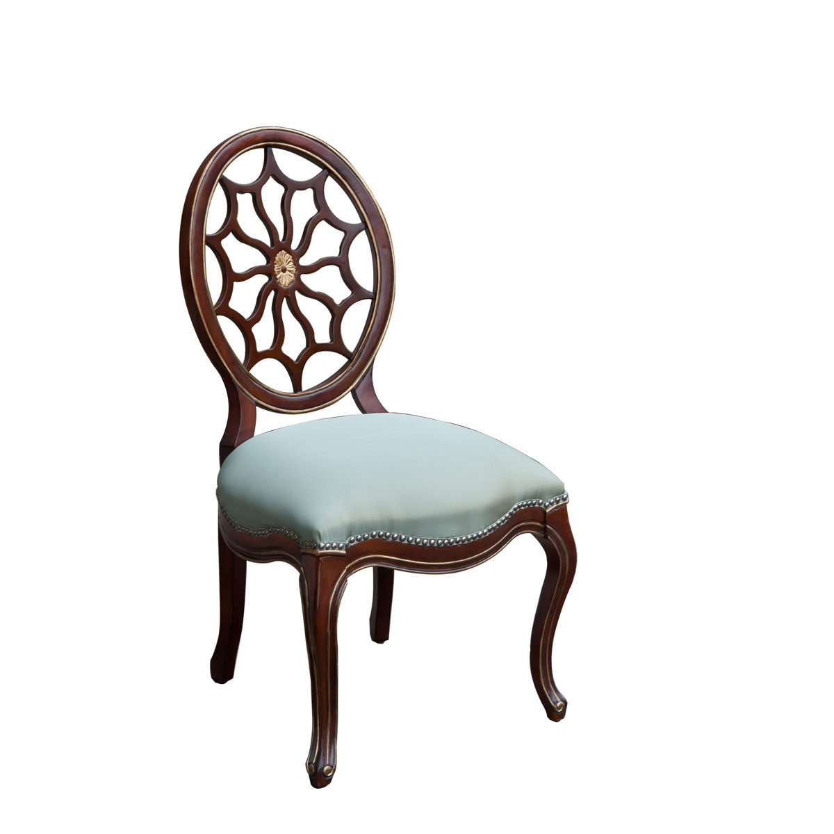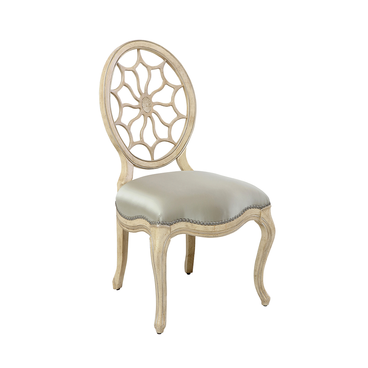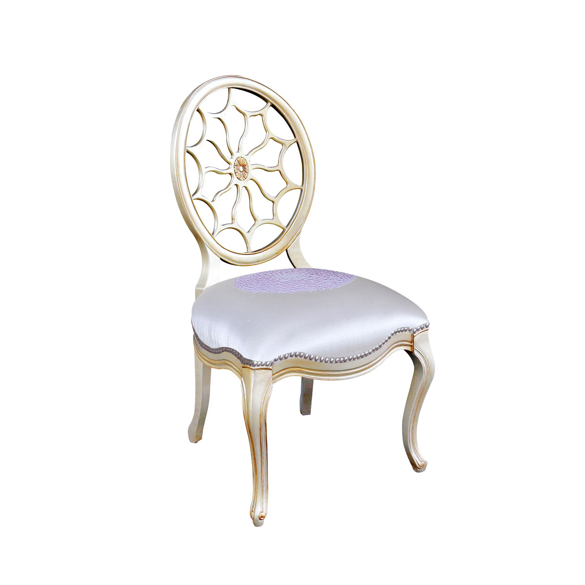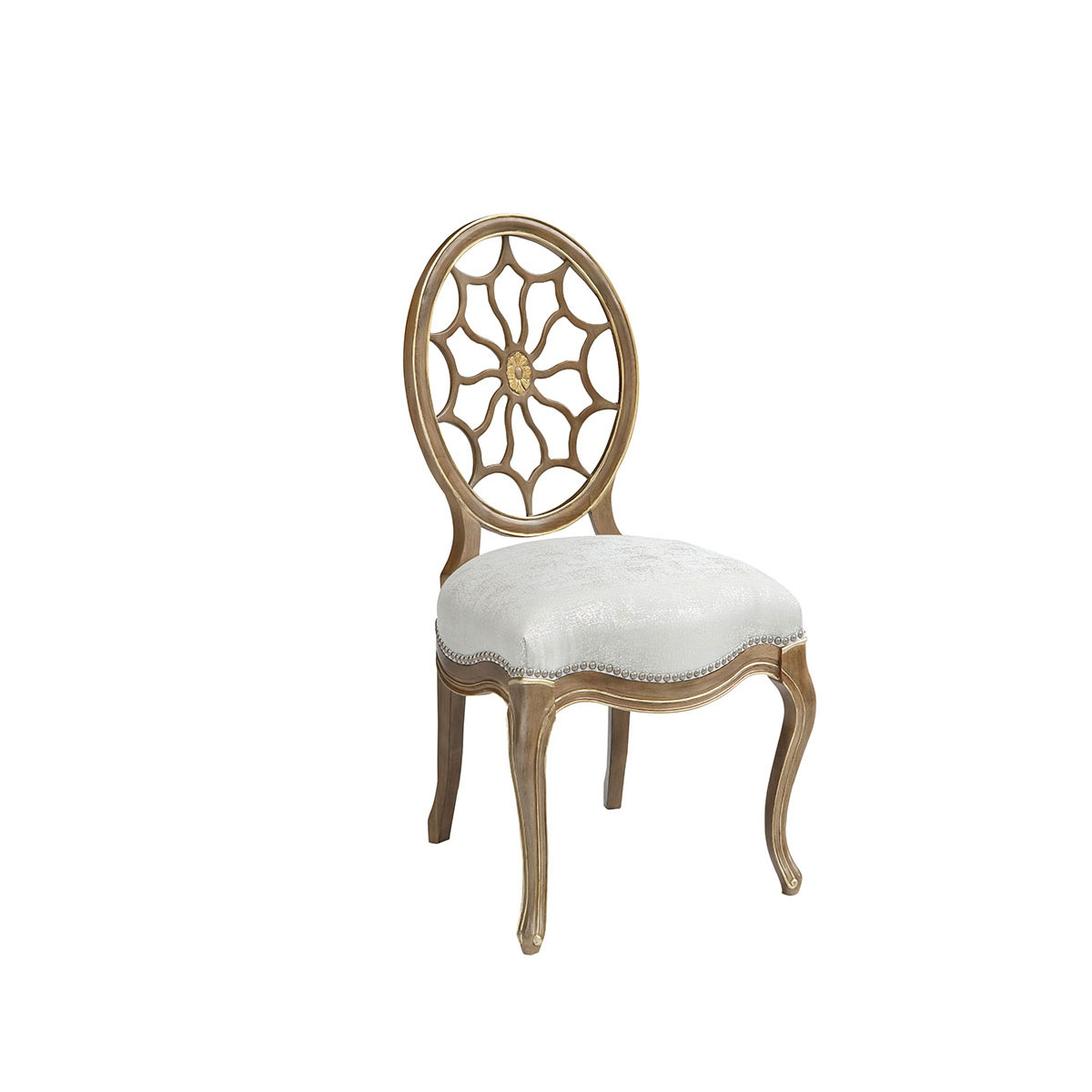 * 參考喬治三世時期的古董造型設計,使用輪子構造椅背和安妮王后腿,配以精致的手工雕刻細節和涂金工藝、布藝面料和厚實柔軟的填充物,是豪華系列凡爾賽玫瑰法式單椅的特色。